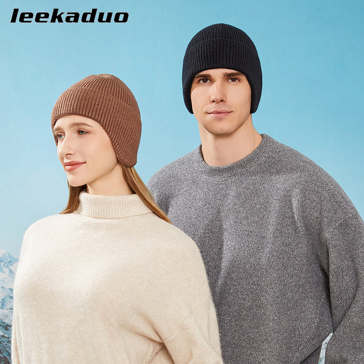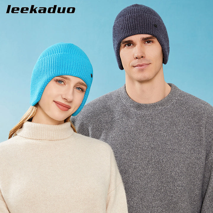 Autumn and winter knitted hats men and women solid color thermal ear caps outdoor riding wool caps ski sleeves cold caps