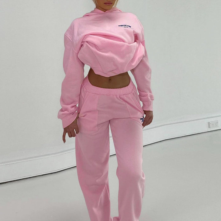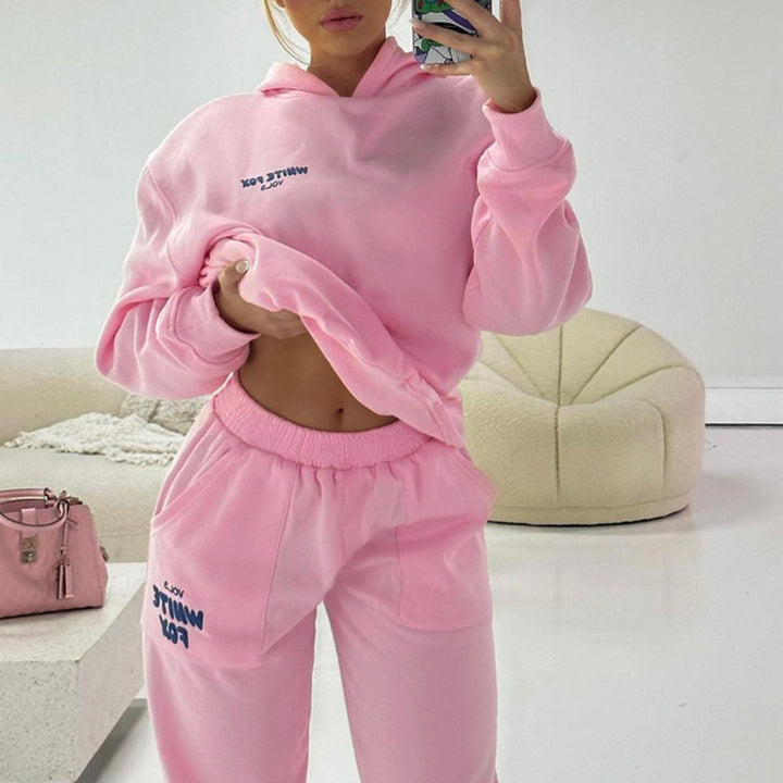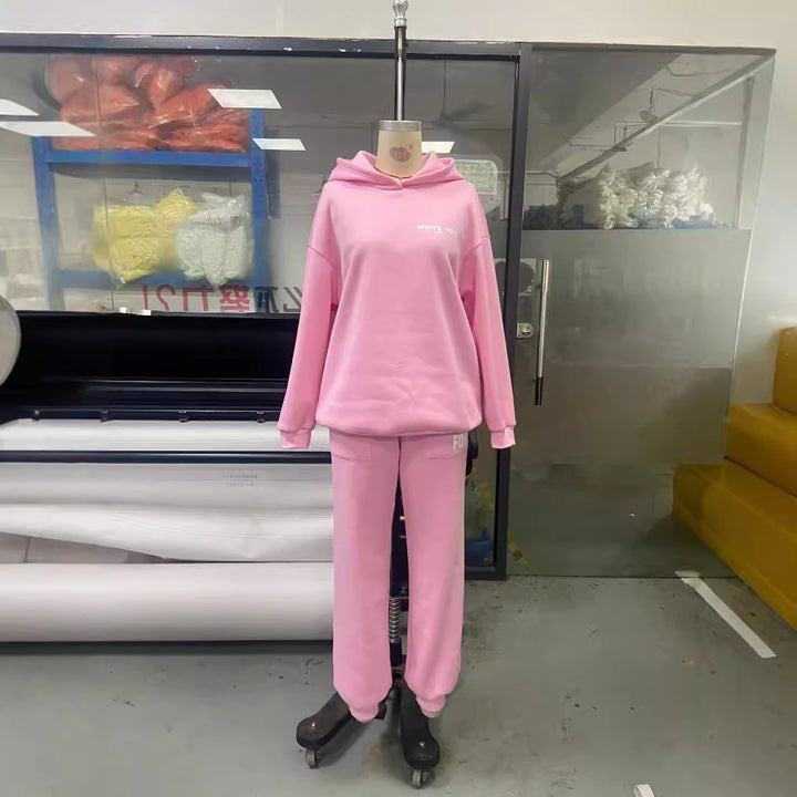 Autumn and winter new long-sleeved fleece hooded sweater casual trousers two-piece set female European and American factory