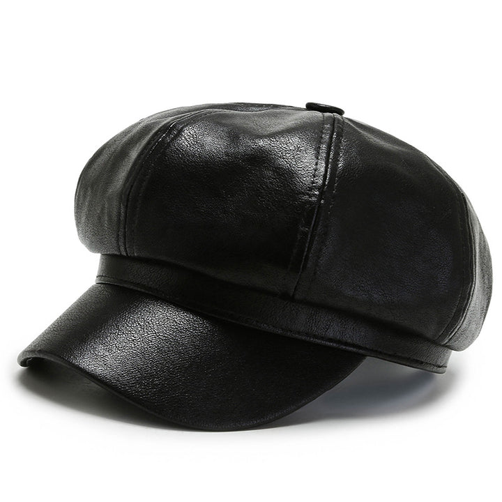 Autumn and winter trend PU leather octagonal hat beret outdoor windproof warm sun hat fashion casual cap