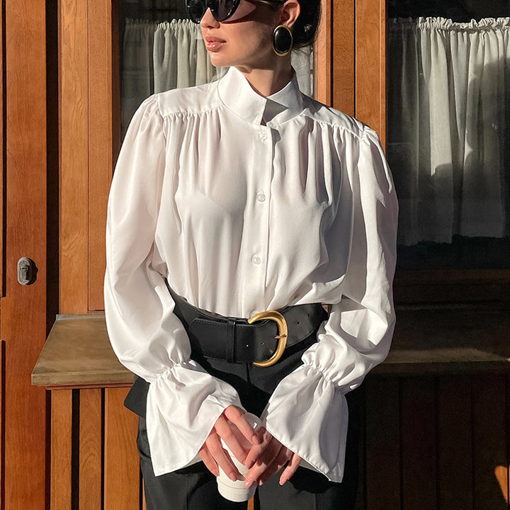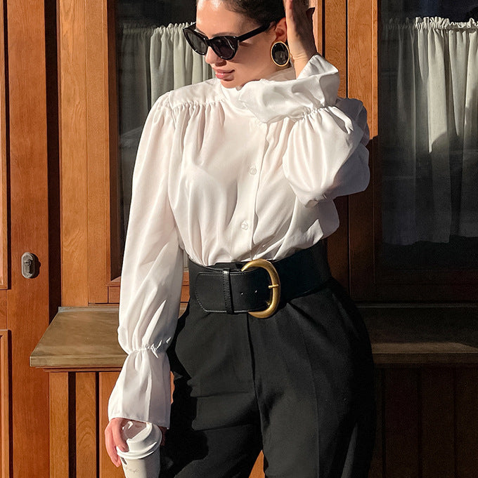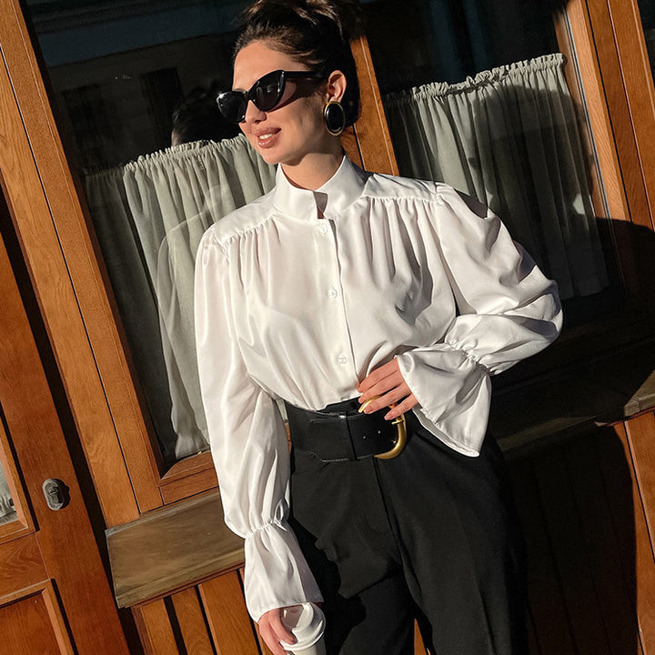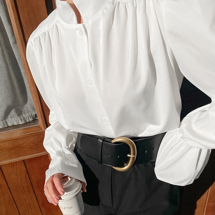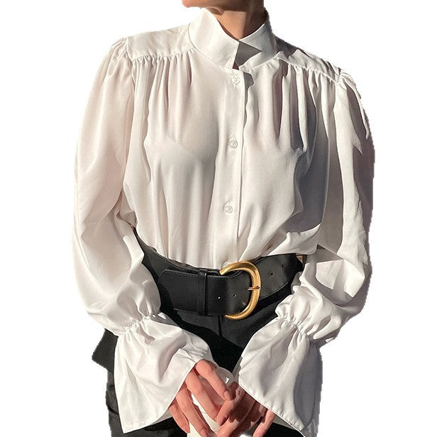 Autumn design French stand-up collar bubble sleeve shirt new women's clothing niche casual s...
