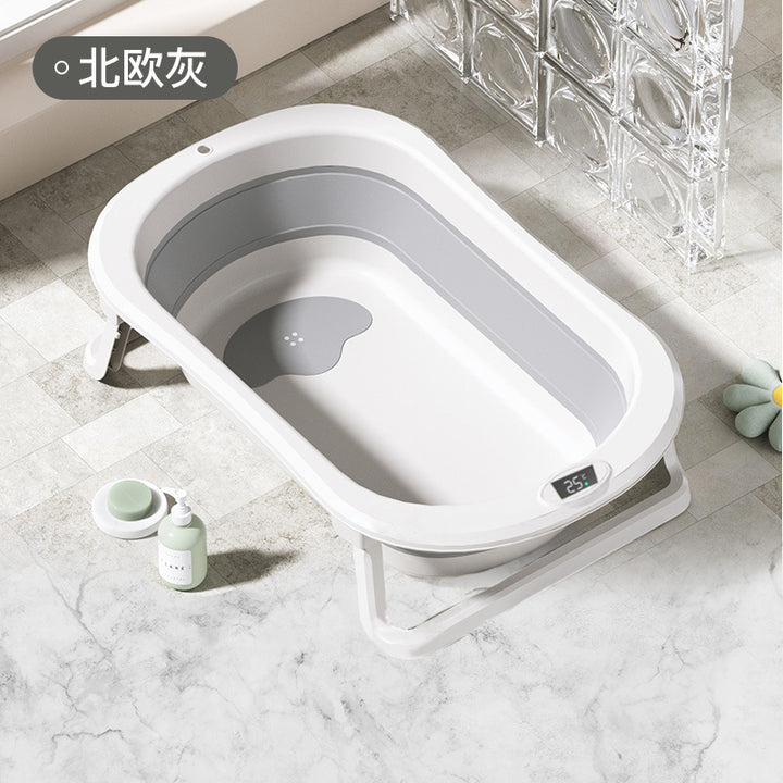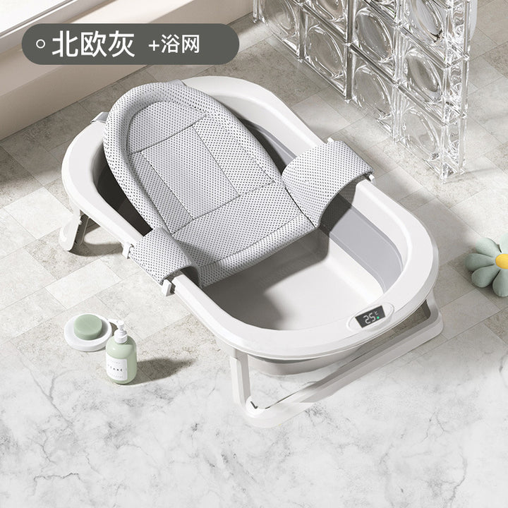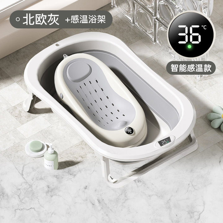 Baby Bath Tub Large Sitting and Lying Temperature Sensing Children's Bath Tub Bath Rack House...
