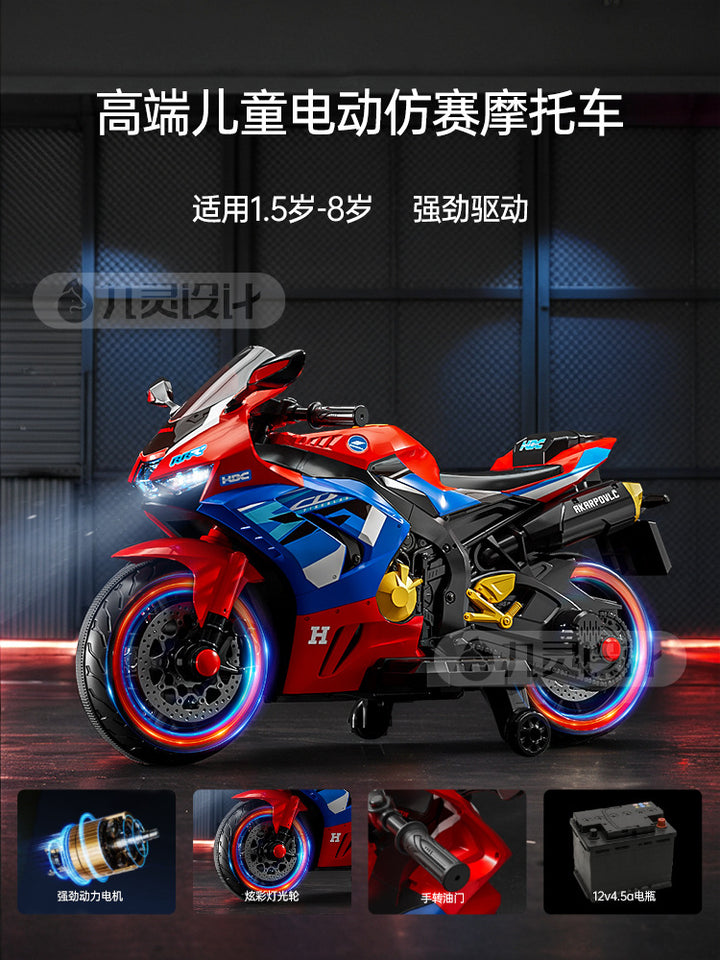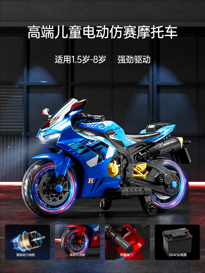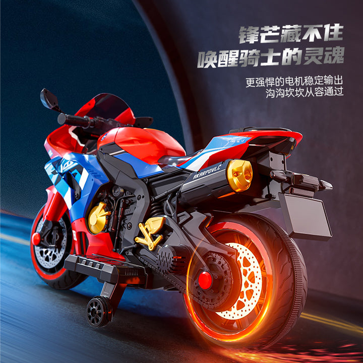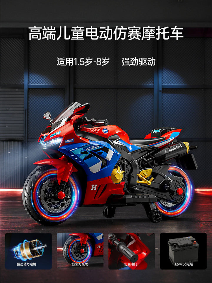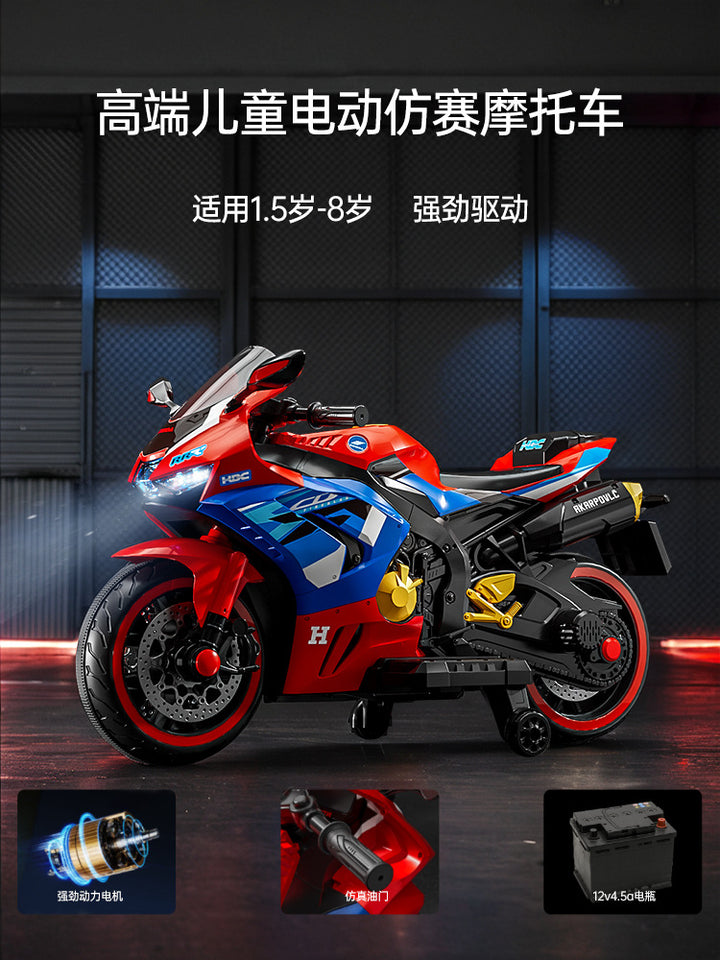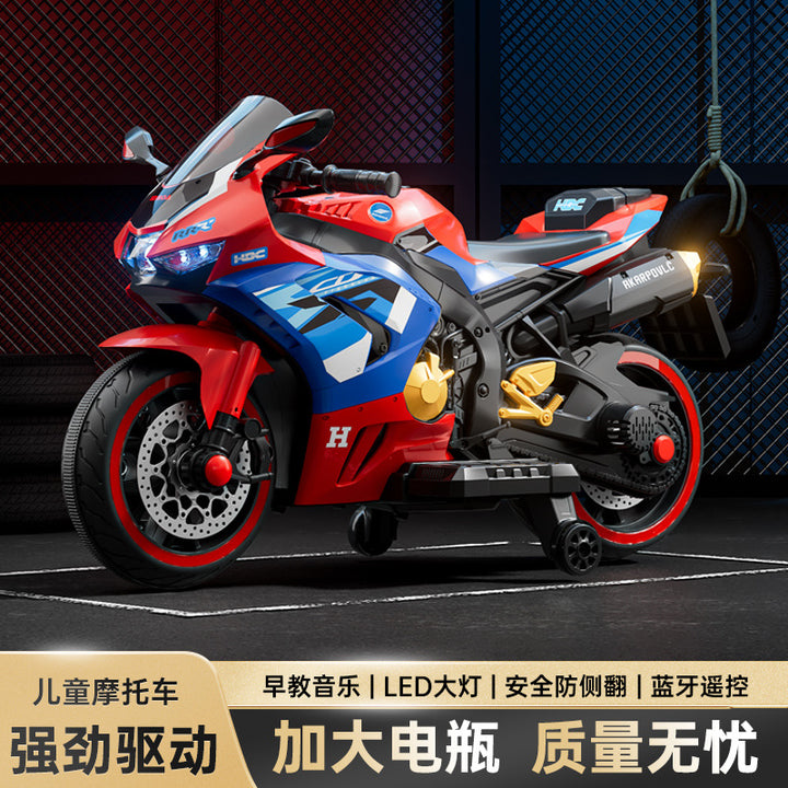 Baby battery car, adults and children can sit, children's electric three-wheeled motorcycle, rechargeable remote control toy car wholesale