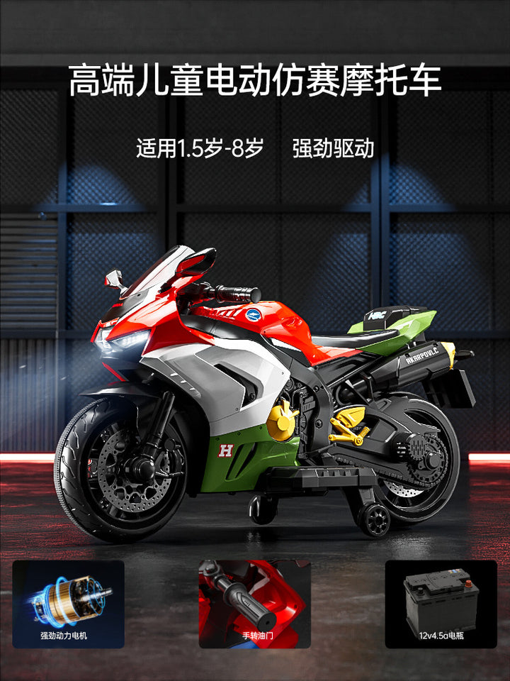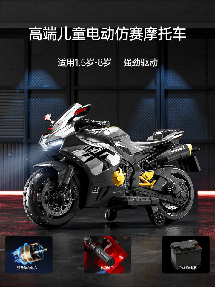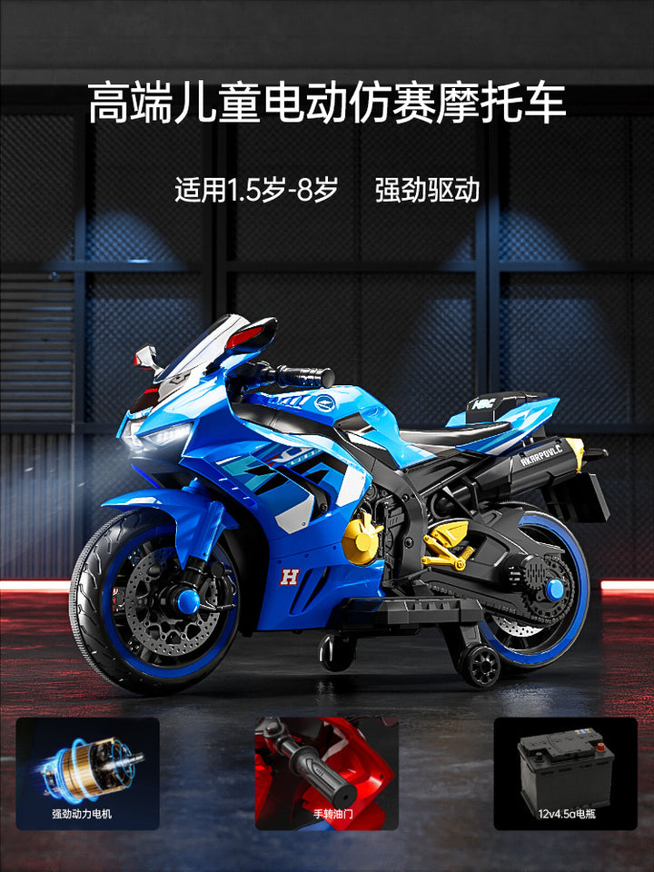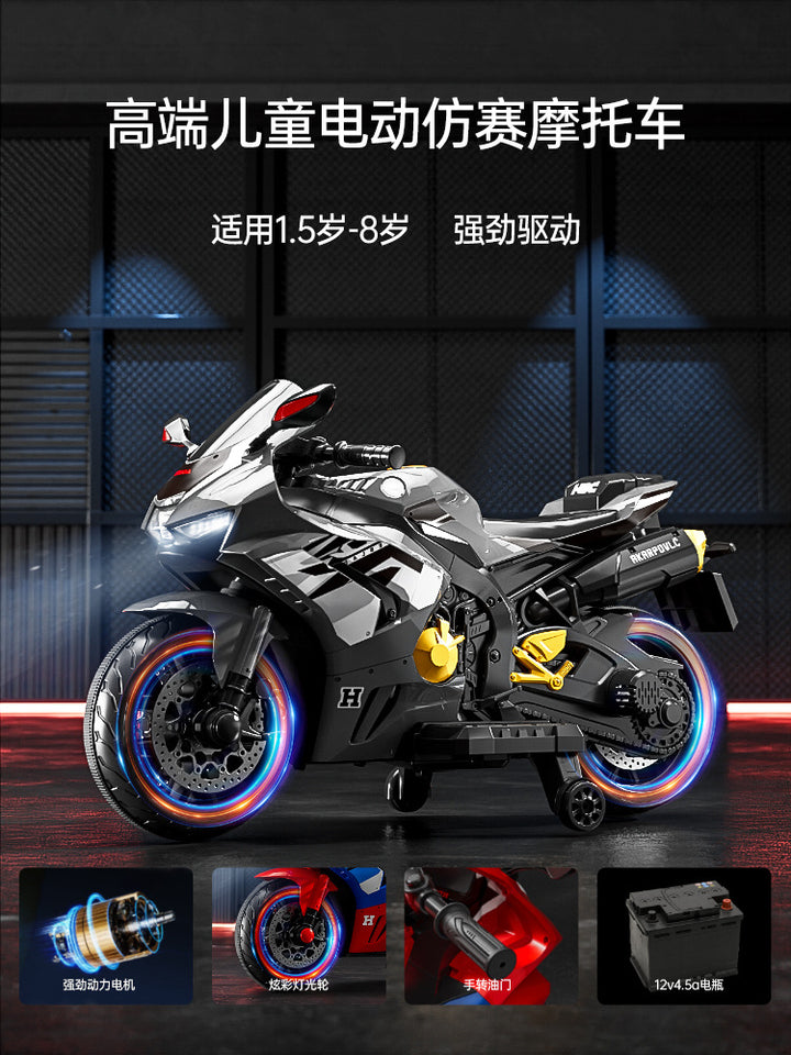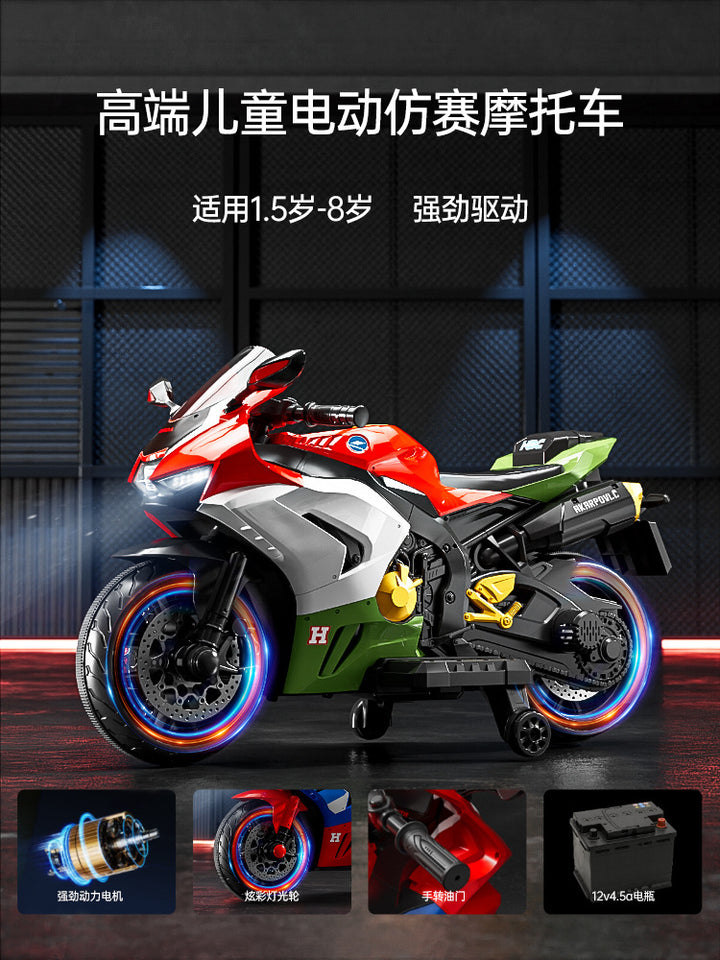 Baby battery car, adults and children can sit, children's electric three-wheeled motorcycle, rechargeable remote control toy car wholesale