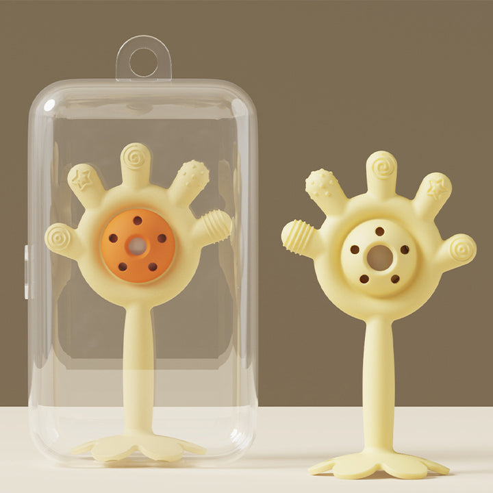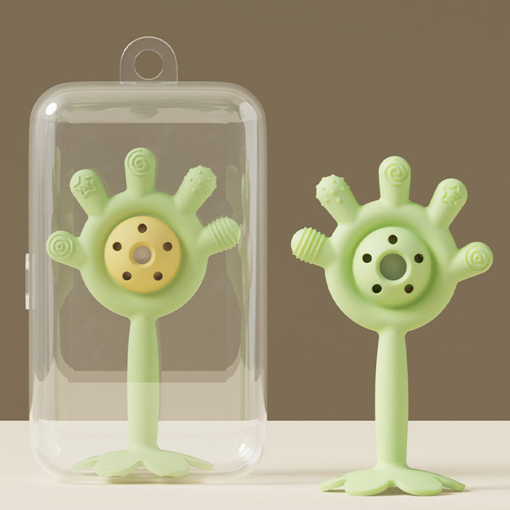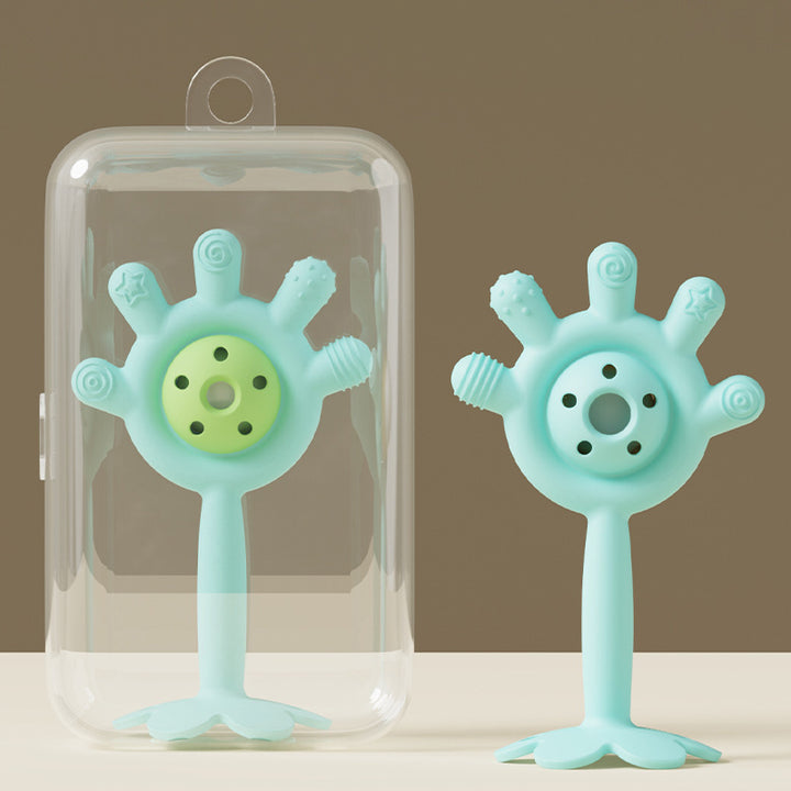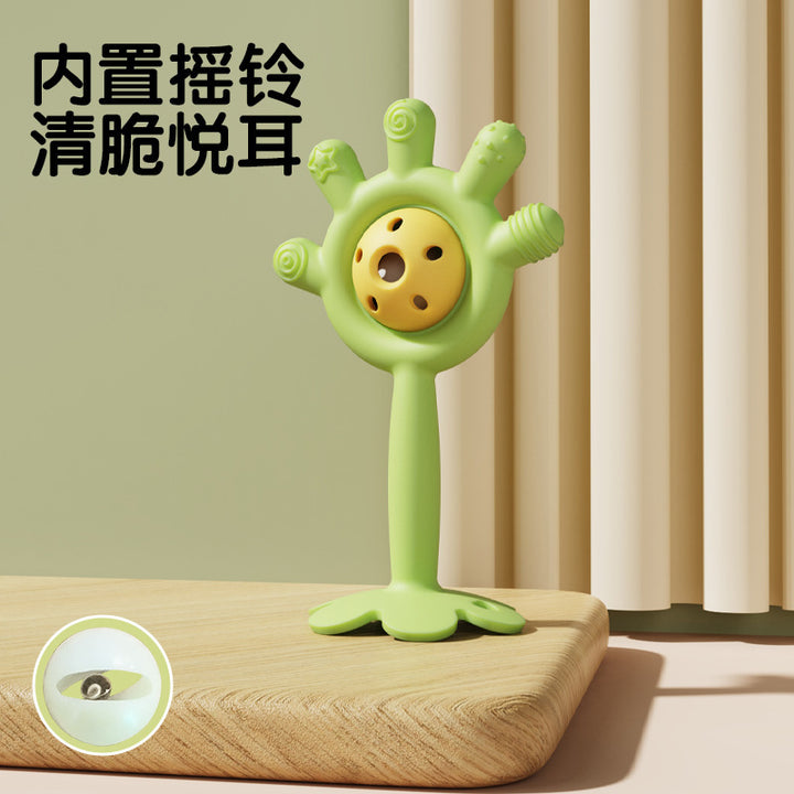 Baby silicone palm rattle toothpaste 0-1 year old baby soothes the mouth, bites the glue baby anti-eats the hand grinding stick