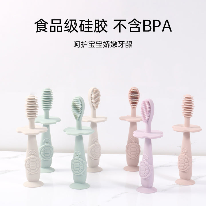 Baby Silicone Toothbrush Infant Baby Tooth Brush Integrated March Baby Children Cleaner Training Toothbrush Bite Glue