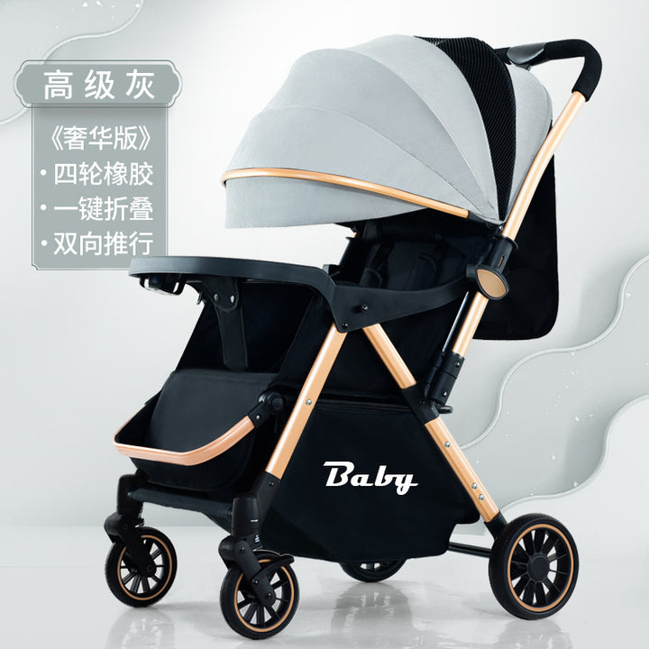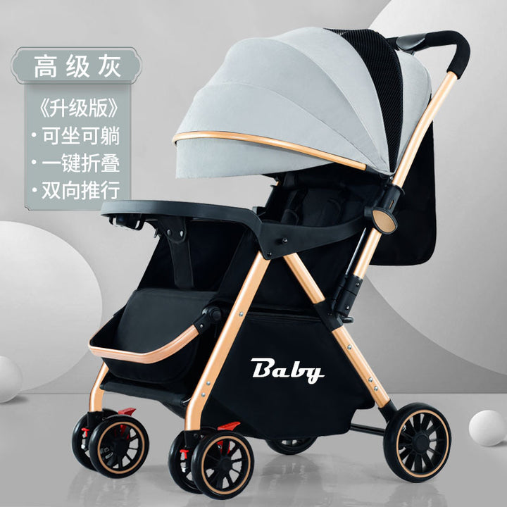 Baby stroller can sit and lie down, lightweight folding baby umbrella cart, four-wheel shock-absorbing children's two-way stroller
