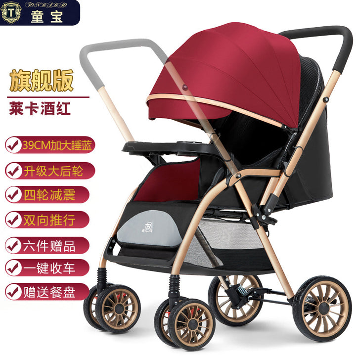 Baby stroller can sit and lie down, ultra-light portable folding simple four-wheel stroller, newborn child stroller