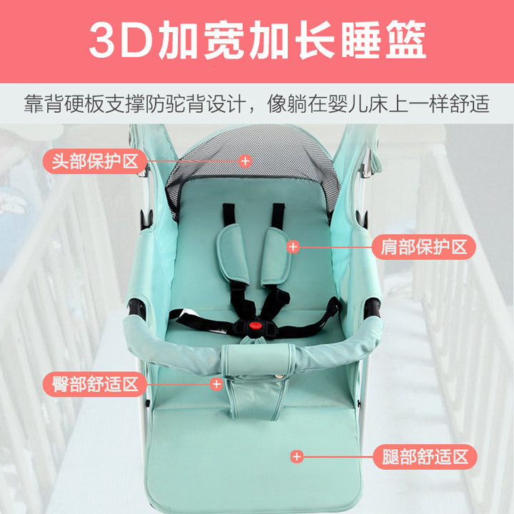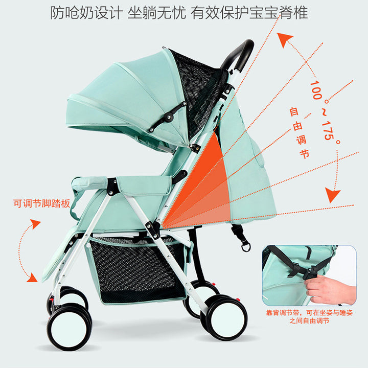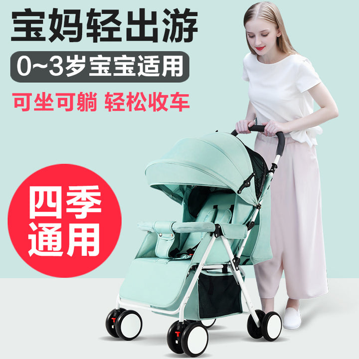 Baby stroller can sit and lie down with one click to close the car, super lightweight shock absorption, go out, newborn children baby folding stroller