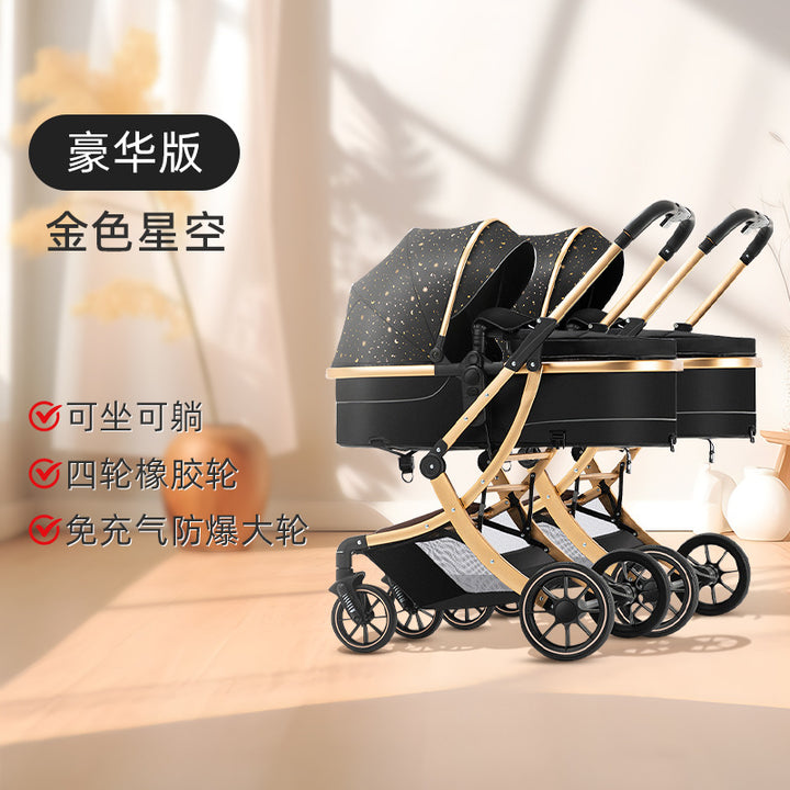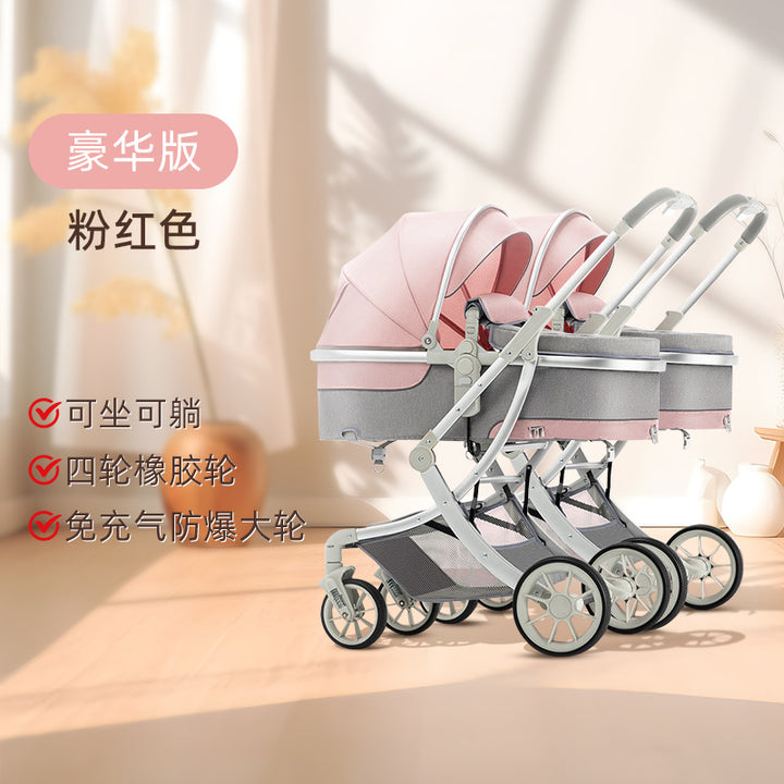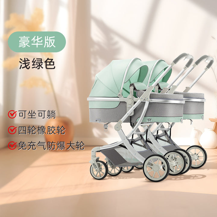 Baby stroller Lightweight folding can sit and lie down High landscape can be split Twin newborn baby stroller