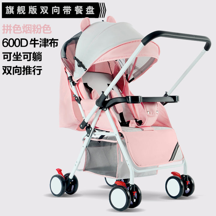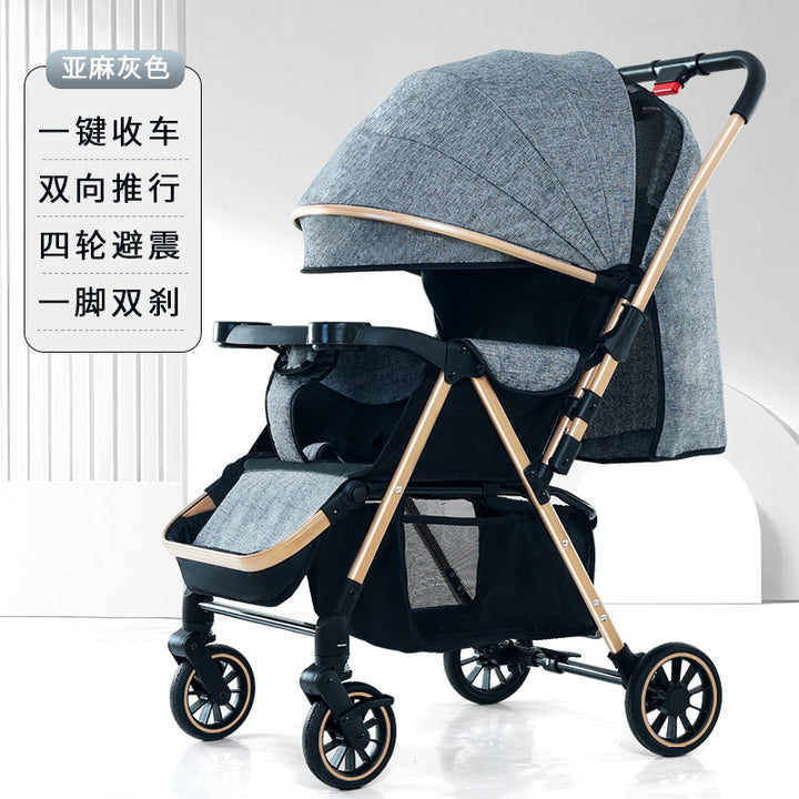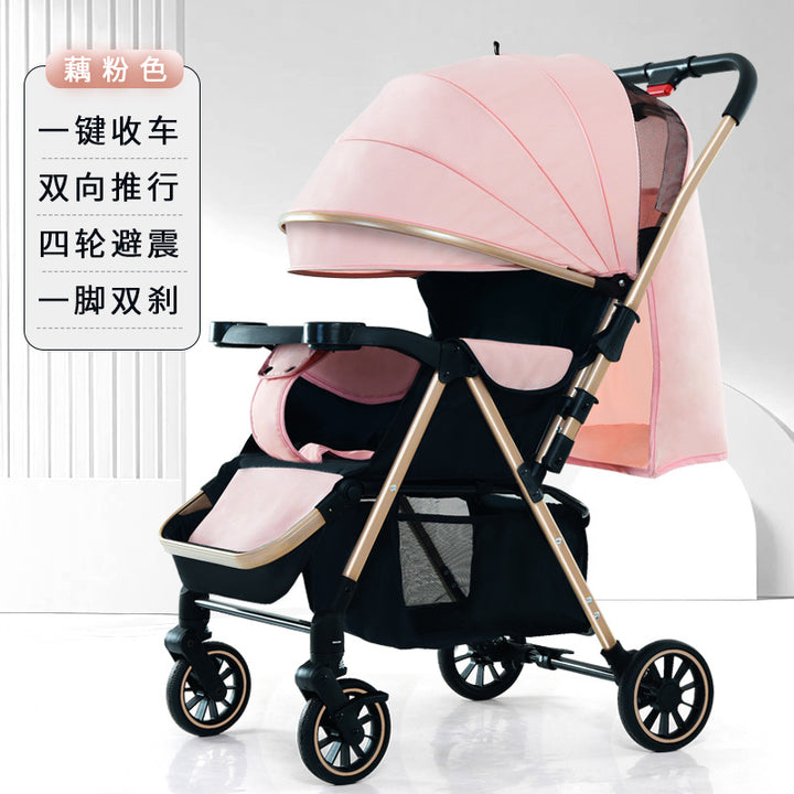 Baby thickened stroller, light and reclining stroller, children's stroller can sit on high landscape folding, two-way implementation of baby walking