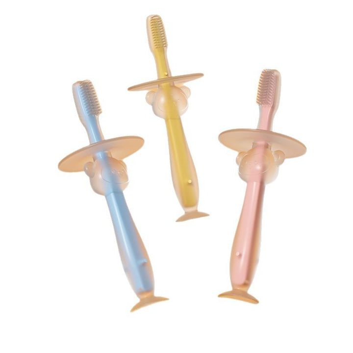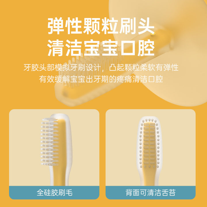 Baby training silicone three-dimensional baby teeth brush standing suction cup toothbrush silicone tongue coating soft bristle brush baffle safety ...