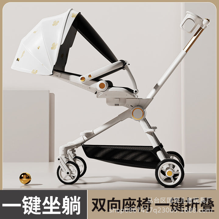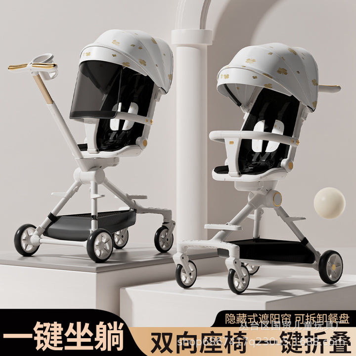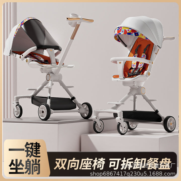 Baby walking artifact, baby stroller, light, sitting, lying flat, foldable high-view four-wheel stroller