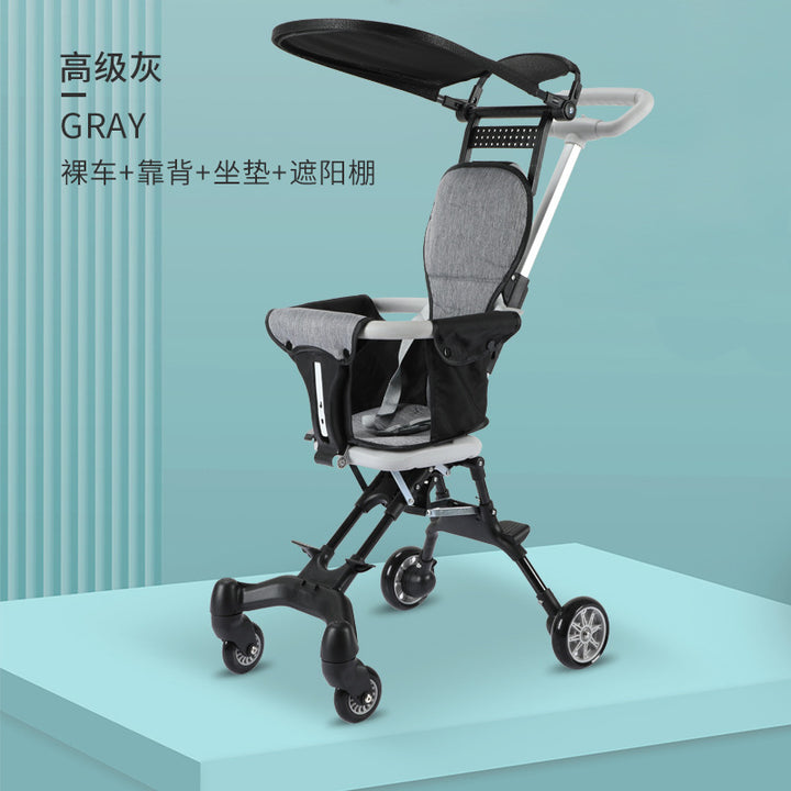 Baby walking artifact lightweight folding baby stroller aluminum alloy handlebar stroller one-click folding two-way baby stroller