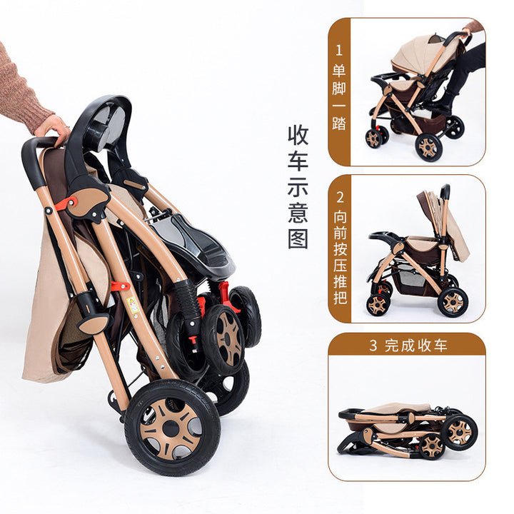 Baby walking stroller can sit and lie down, lightweight folding high landscape lightweight two-way newborn baby stroller