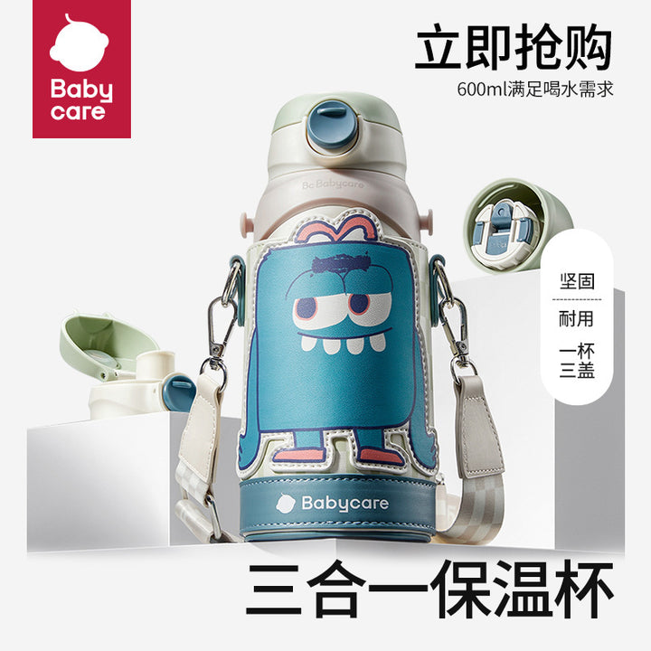 Babycare children's thermos cup 3-in-1 children over 3 years old straw water cup stainless steel kindergarten kettle