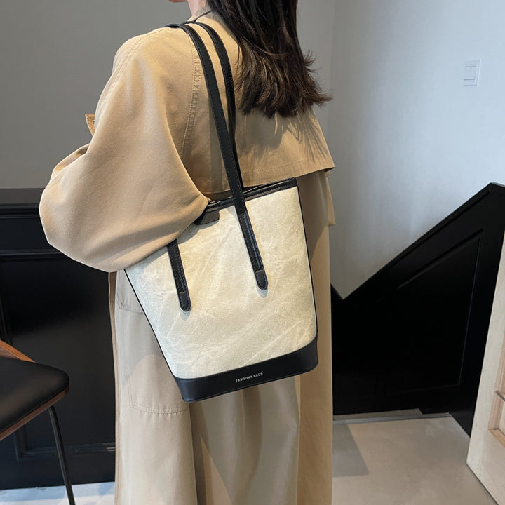 Bag 2025 autumn and winter new retro contrasting color large-capacity bucket bag shoulder handbag women's messenger bag bag