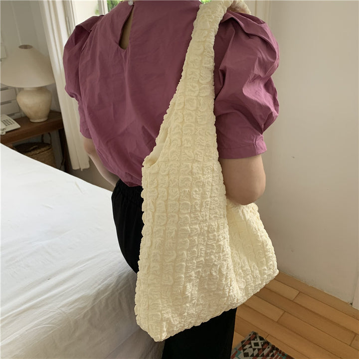 Bag large capacity women's Korean version single shoulder cloud pleated bucket bag simple cas...