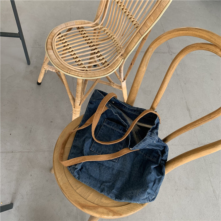 Bag women's bag new Korean version Mori women's Japanese literary and artistic washed denim shoulder handbag large-capacity canvas bag