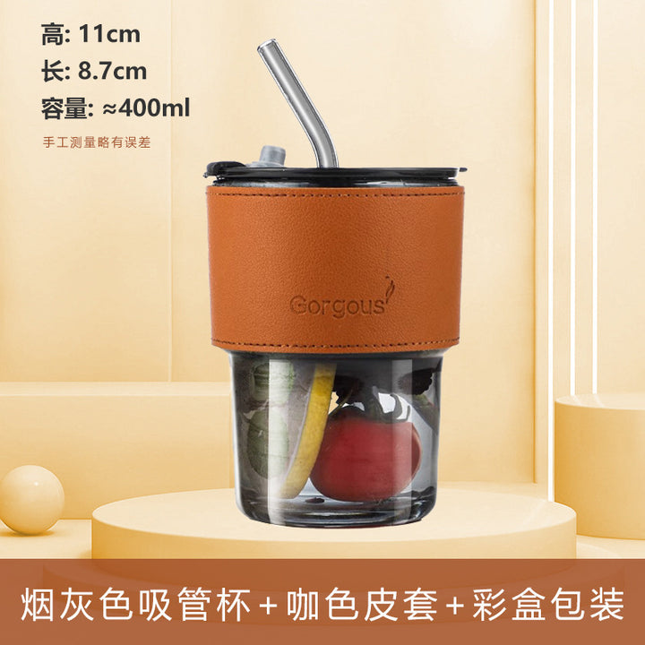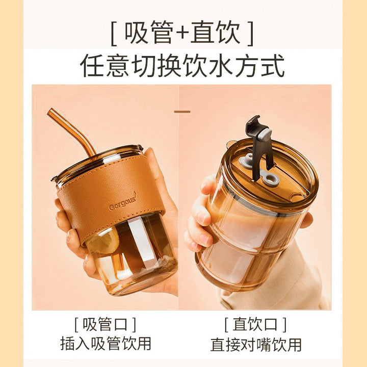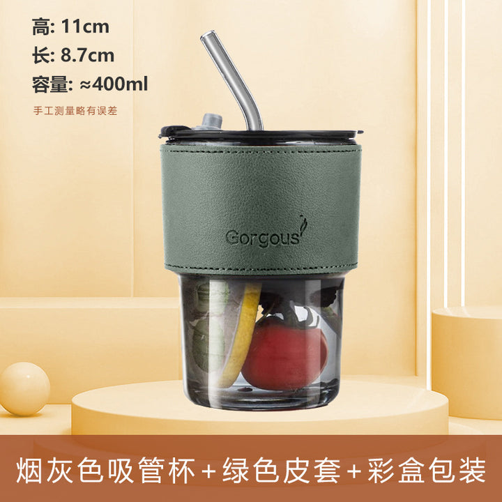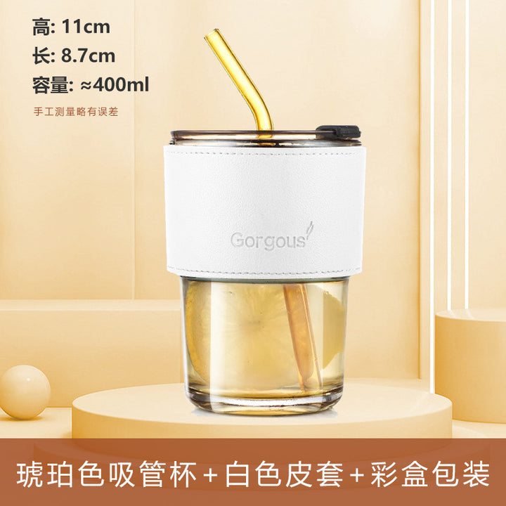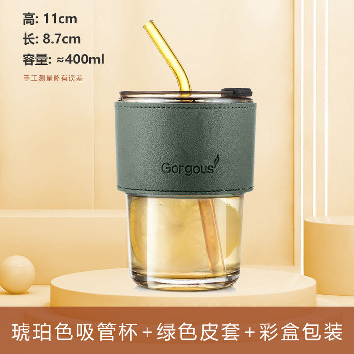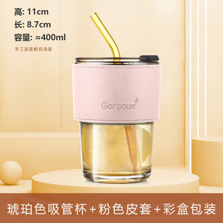 Bamboo cup Straw cup Office coffee cup High value water cup Household glass Juice milk cup Printed
