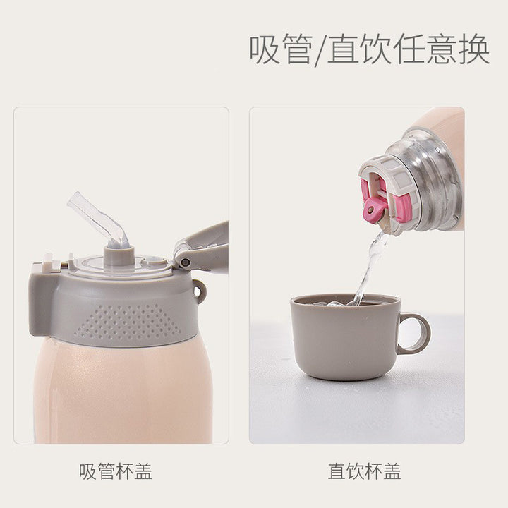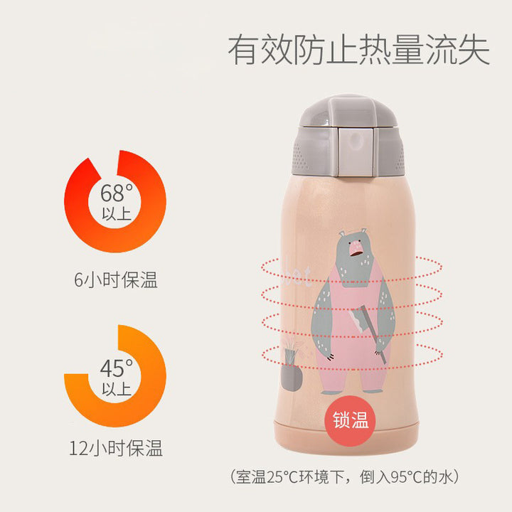 Baohui children's thermos cup with straw dual-purpose baby water cup going out student stainless steel anti-drop kettle