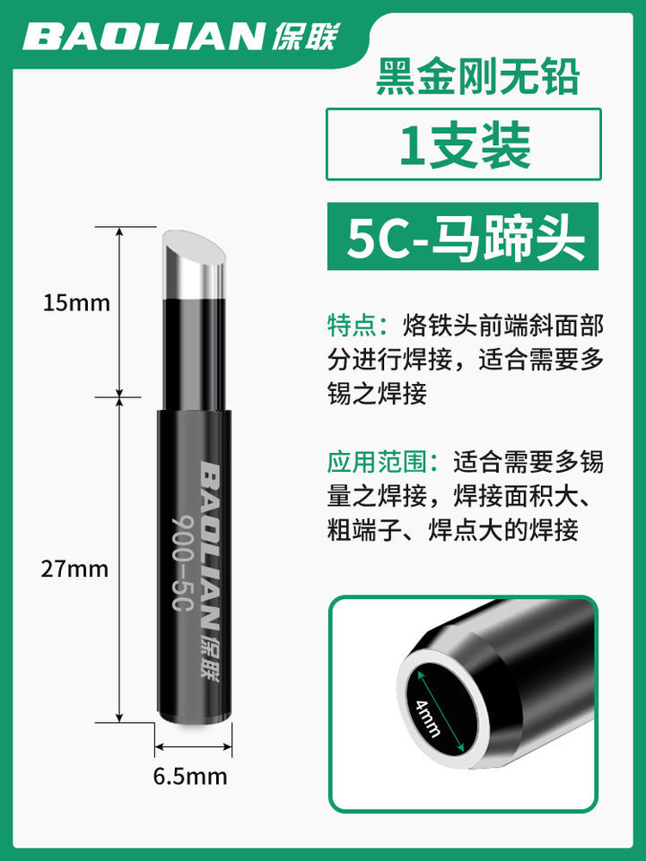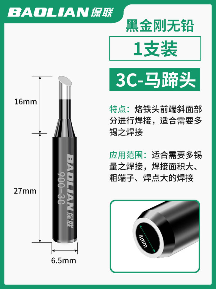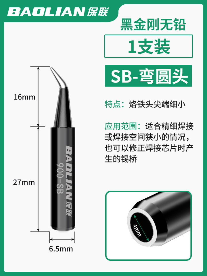 Baolian soldering iron head lead-free electric welding head Internal heating type 936 soldering iron nozzle Horseshoe tip curved nozzle knife head ...