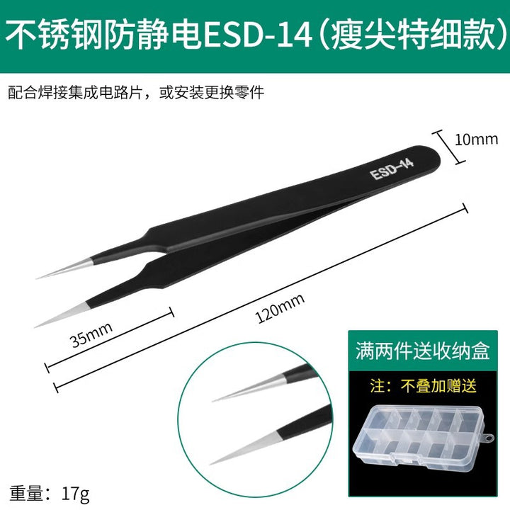 Anti-static ESD-10 standard tip, Anti-static ESD-11 extended tip, Anti-static ESD-12 medium length widened tip, Anti-static ESD-13 round flat head, Anti-static ESD-14 standard tip, Anti-static ESD-15 Eagle Beak Tip, Anti-static three-piece set [ESD10/13/15], Anti-static six-piece set [ESD10/11/12/13/14/15], Stainless steel ST-10 standard tip, Stainless steel ST-11 elongated tip, Stainless steel ST-12 medium length widened tip, Stainless steel ST-13 round flat head, 不锈钢ST-14标准特尖, 不锈钢ST-15鹰咀弯尖, 不锈钢三件套【ST10/13/15】, 不锈钢六件套【ST10/11/12/13/14/15】, 让利款-ESD-15弯头 樱花粉, 让利款-ESD-12直头 樱花粉, Make profit - (straight + elbow), ESD-15 Elbow, Mint Green, ESD-12 Straight, Mint Green, Mint green (straight + elbow) free storage box, ESD-12 Straight Head, Violet, ESD-15 Elbow, Violet, Violet (straight + elbow) free storage box |