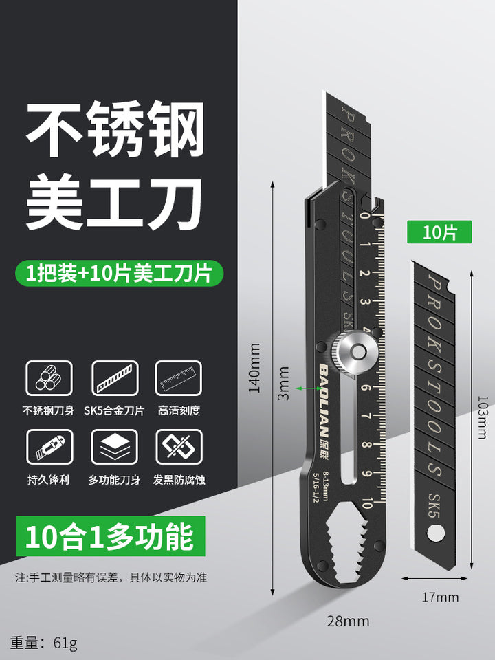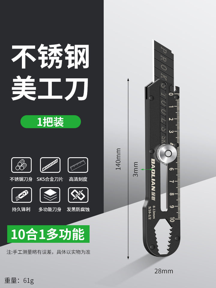 Baolian stainless steel multi-functional utility knife All-steel heavy-duty thickened wallpaper knife Paper cutting knife Unpacking knife can be us...