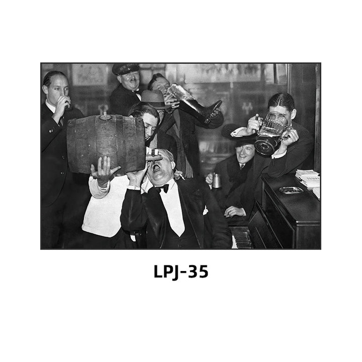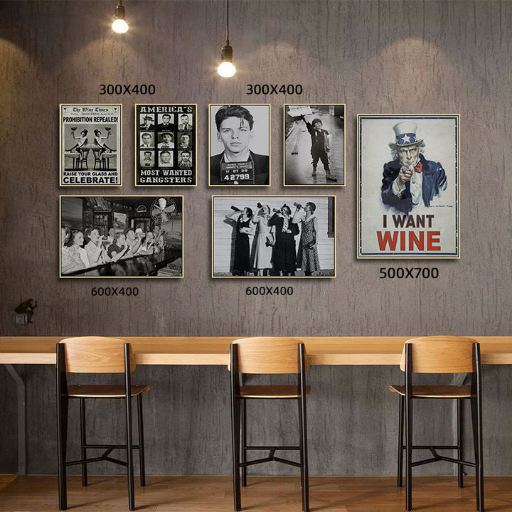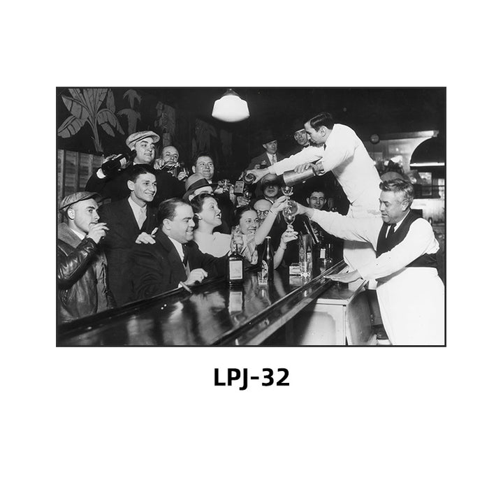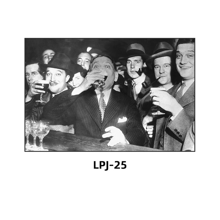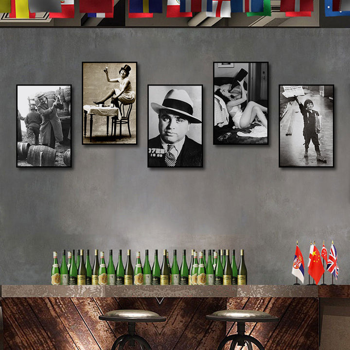 Bar decoration painting retro tavern prohibition black and white poster American movie western restaurant Baijiu whiskey hanging painting