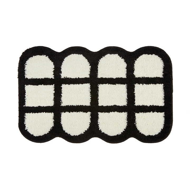 Bathroom absorbent floor mat, bathroom door non-slip floor mat, black and white wind flocking thickened toilet toilet carpet