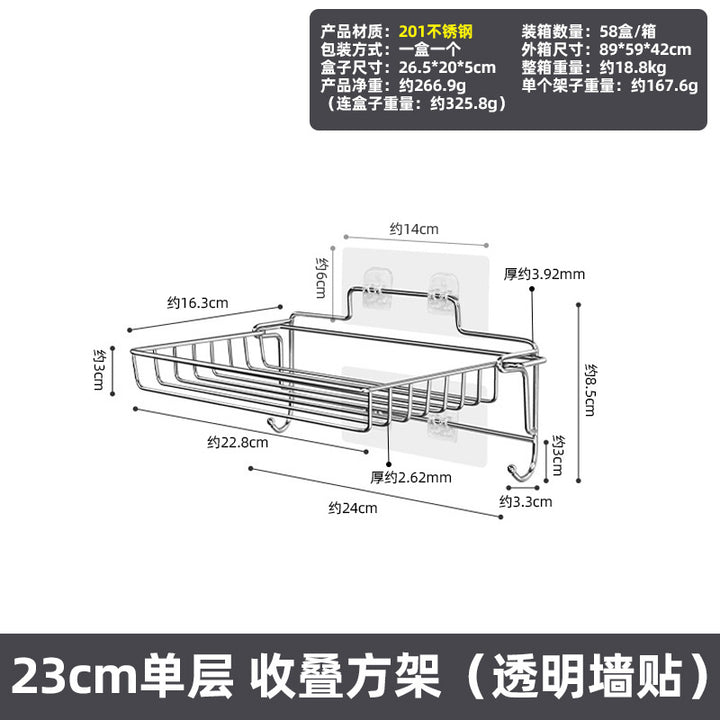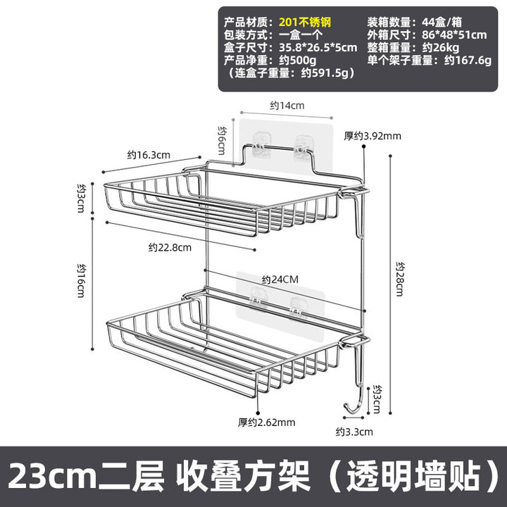 Bathroom folding rack non-punching toilet toilet wall-mounted storage rack kitchen multi-layer storage basket