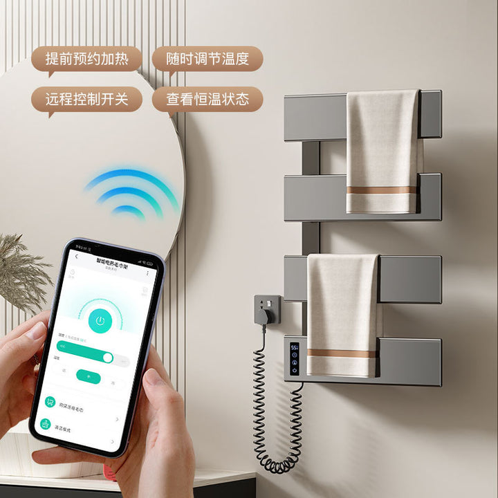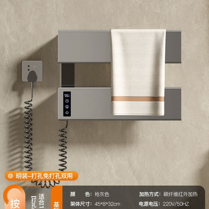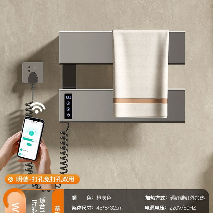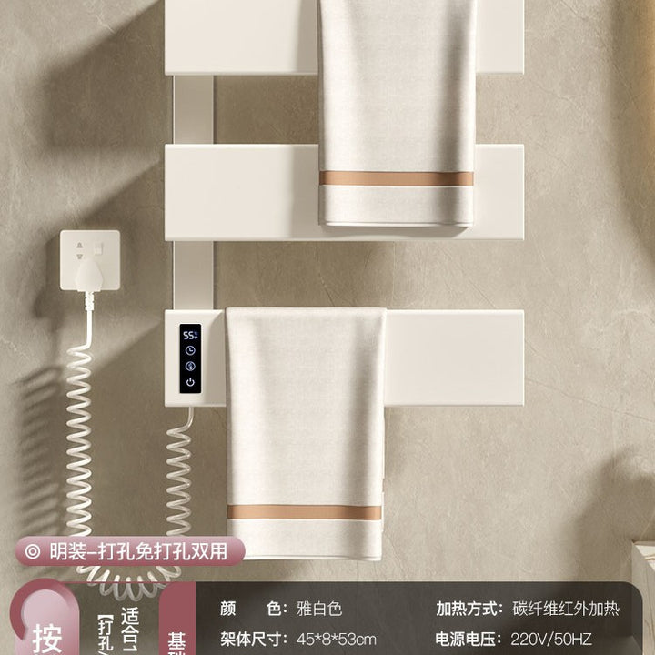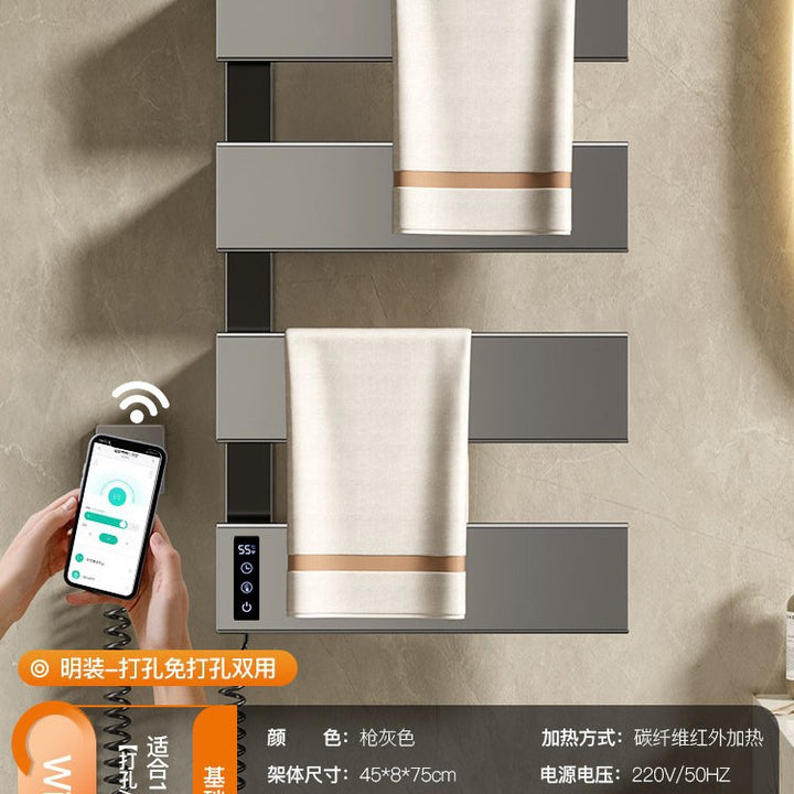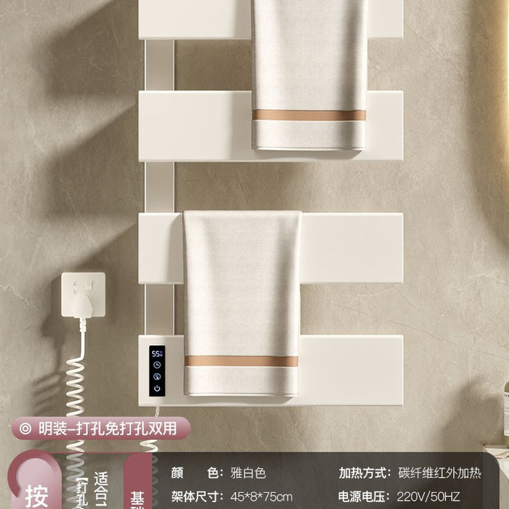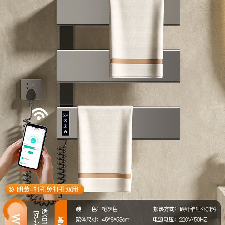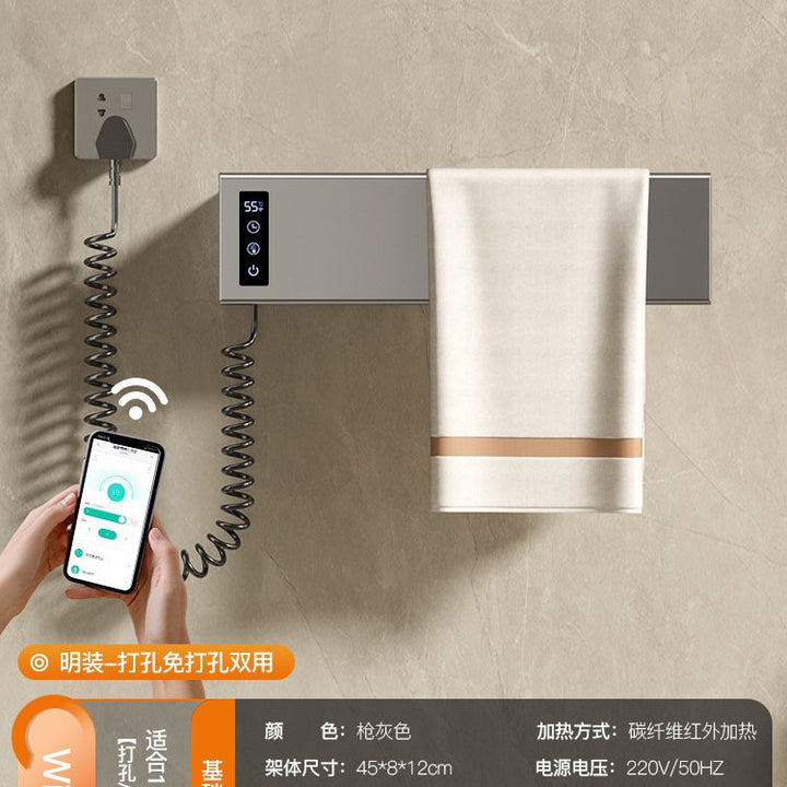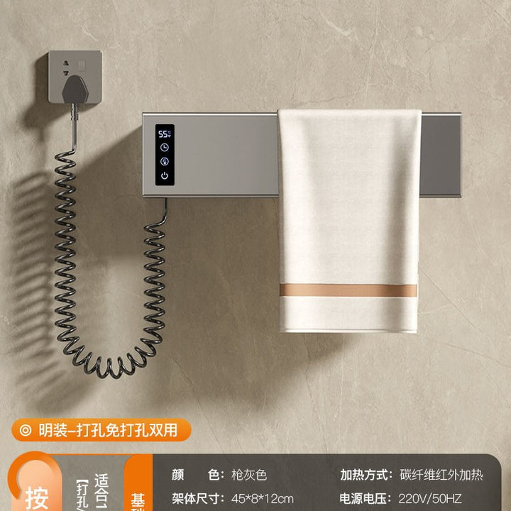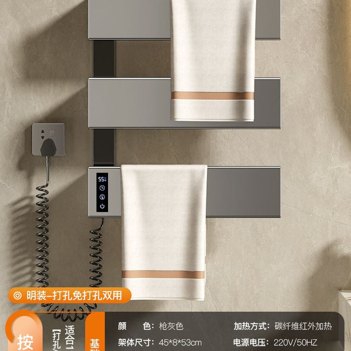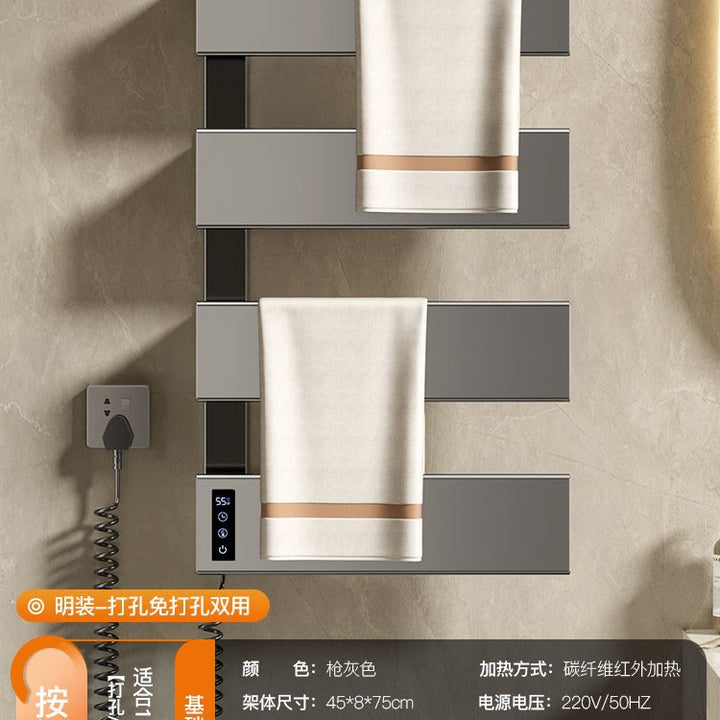 Bathroom intelligent electric towel rack non-punching electric towel bar space aluminum constant temperature drying bath towel rack wholesale
