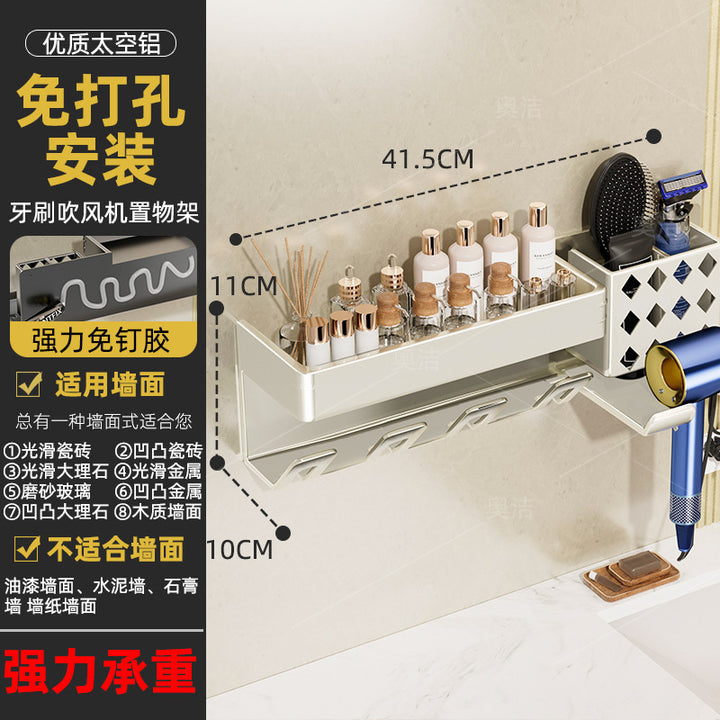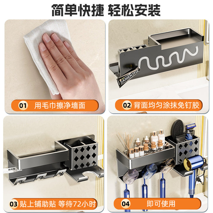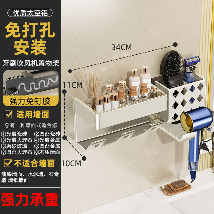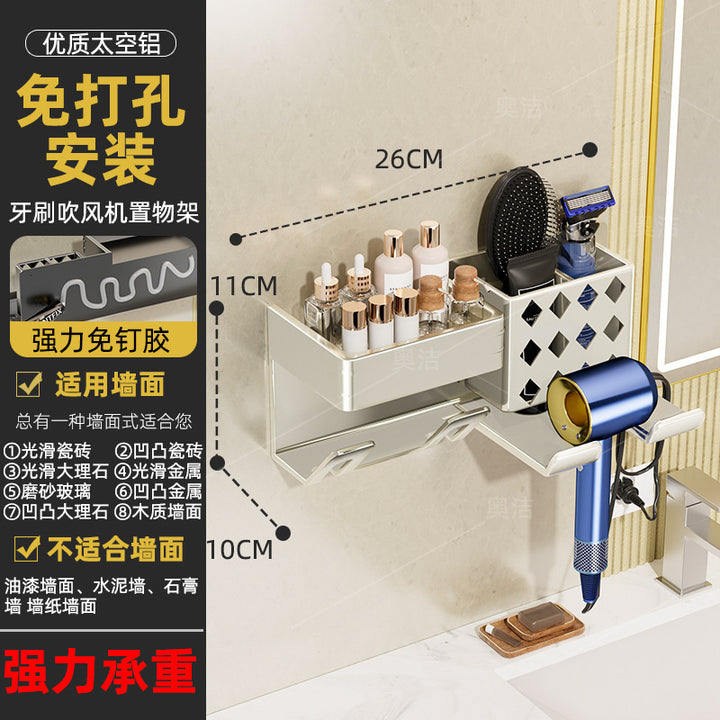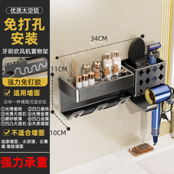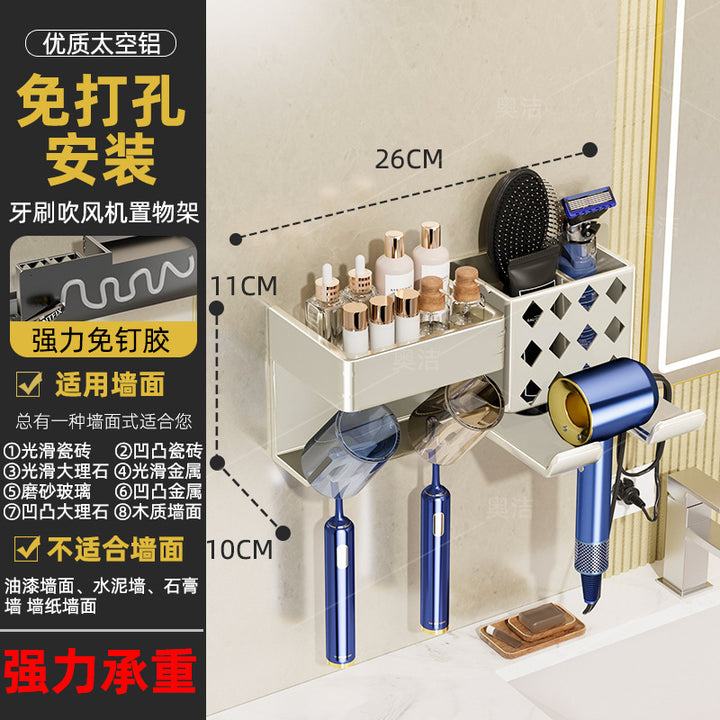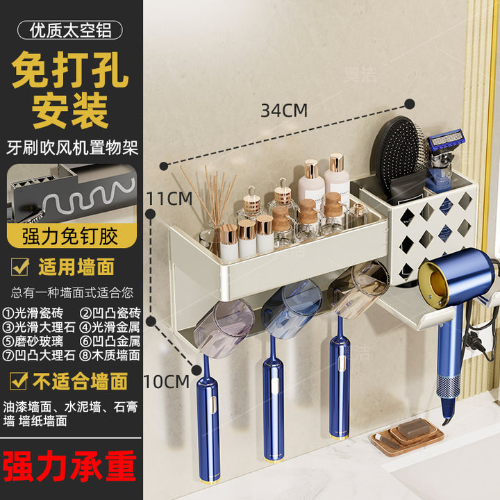 Bathroom No-punching Toothbrush Shelf Wall-mounted Light Luxury Brushing Mouthwash Cup Toothpaste Toothware Hair Dryer Shelf