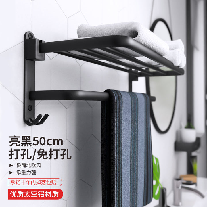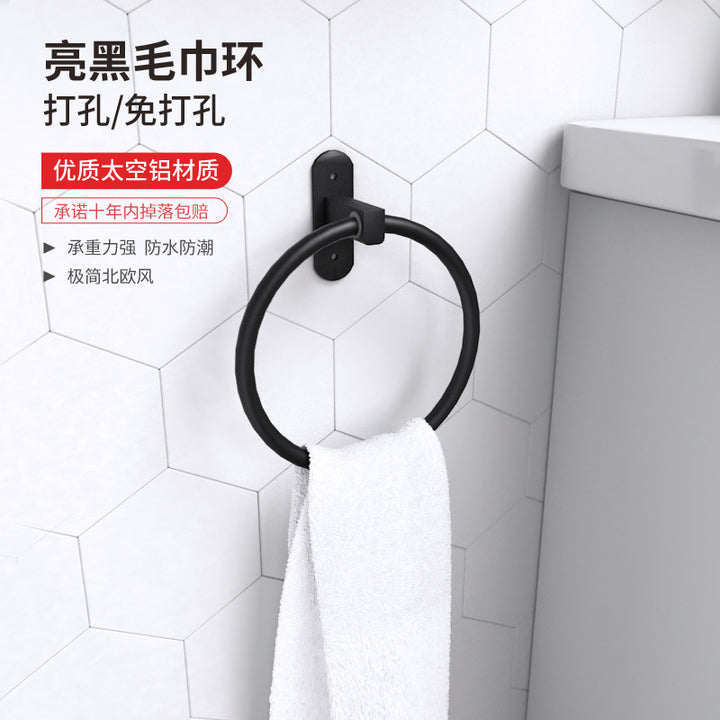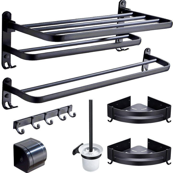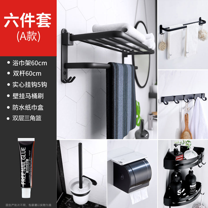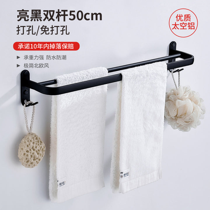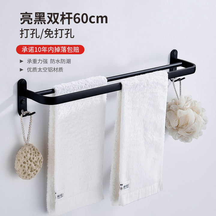 Bathroom rack No punching toilet towel rack Bath towel rack Black space aluminum bathroom hardware pendant set