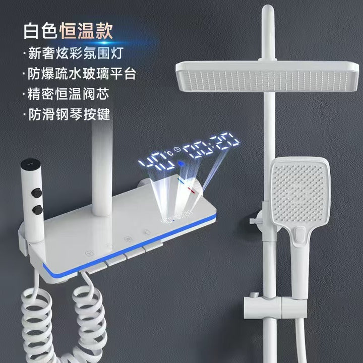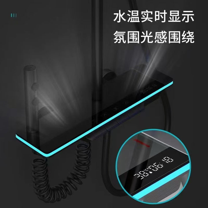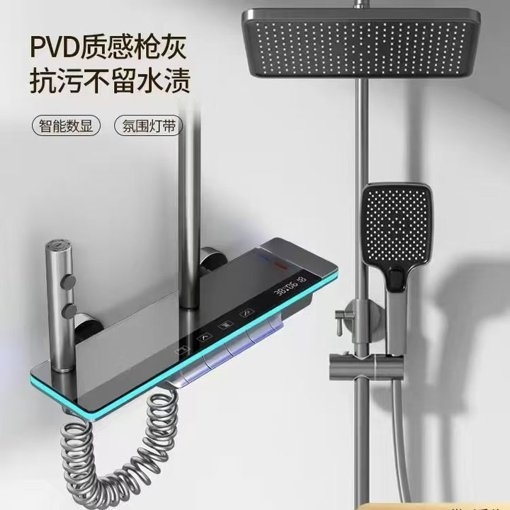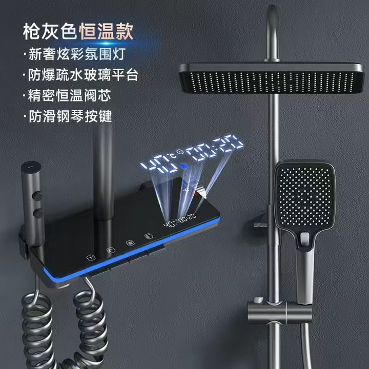 Bathroom shower shower set All copper supercharged nozzle Grey household thermostatic digital display button Ambient light shower