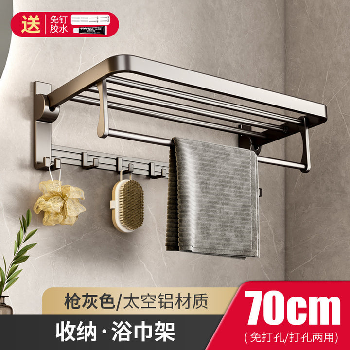 Bathroom towel rack, toilet non-punching bath towel rack, bathroom toilet wall-mounted space aluminum storage rod
