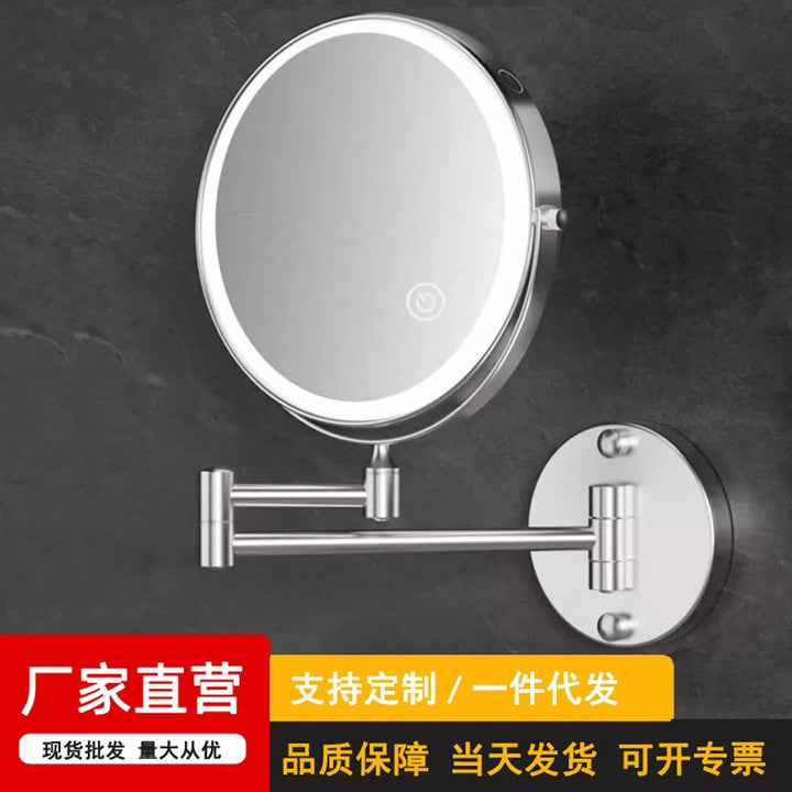 Bathroom vanity mirror led non-punching wall hanging folding lamp mirror hotel bathroom telescopic double-sided vanity mirror