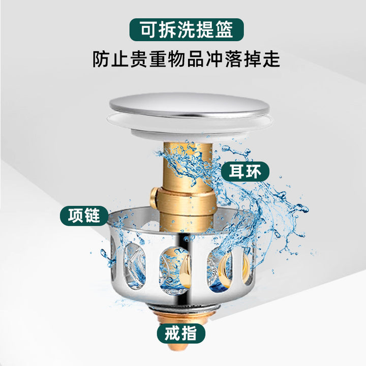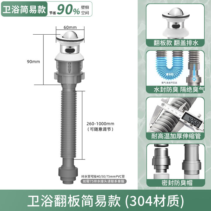 Bathroom washbasin bouncing core sewer cover + straight row simple sewer pipe anti-odor leakage plug drain pipe