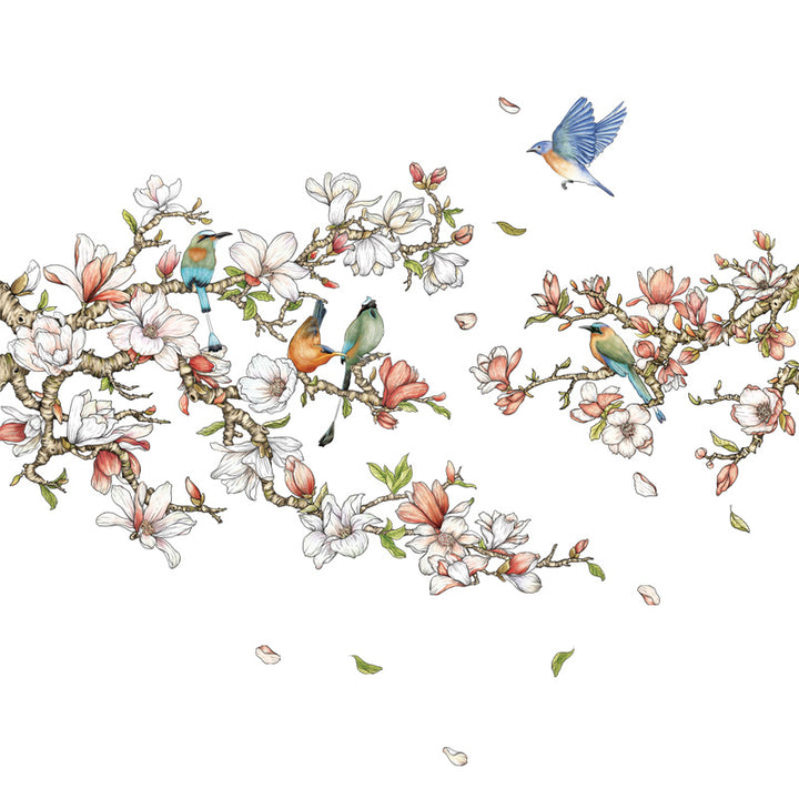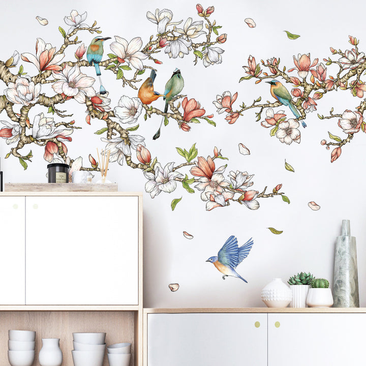 Bedroom background decoration sticker living room TV background wall Magnolia sticker large flower and bird wallpaper background wall sticker