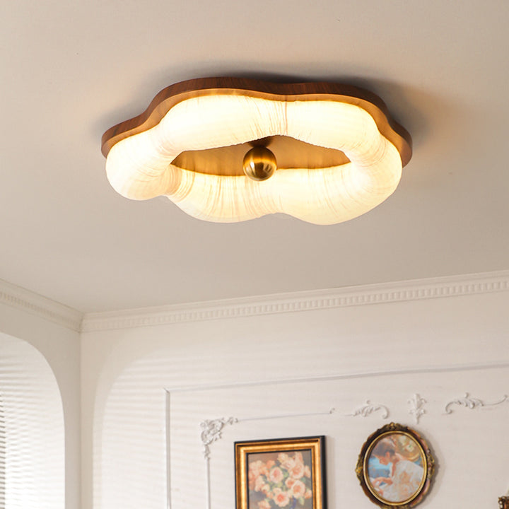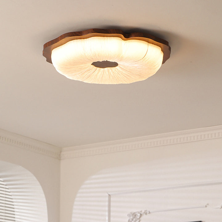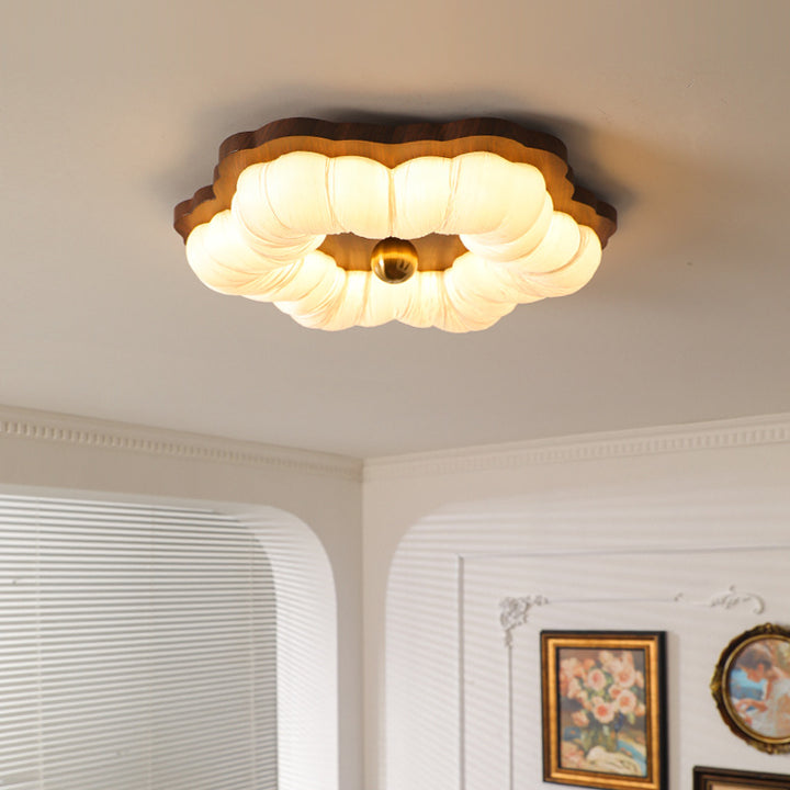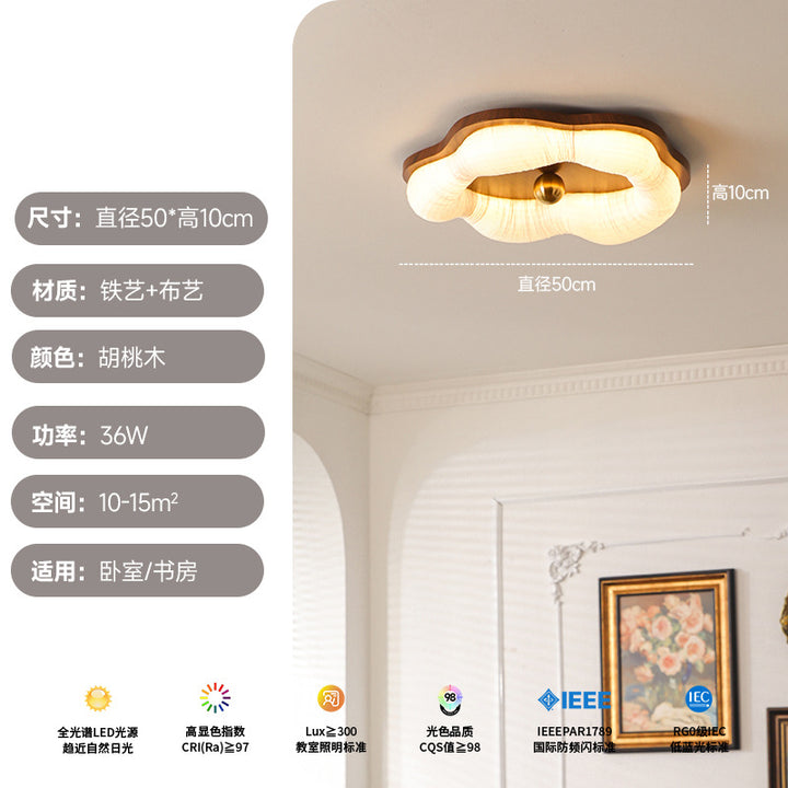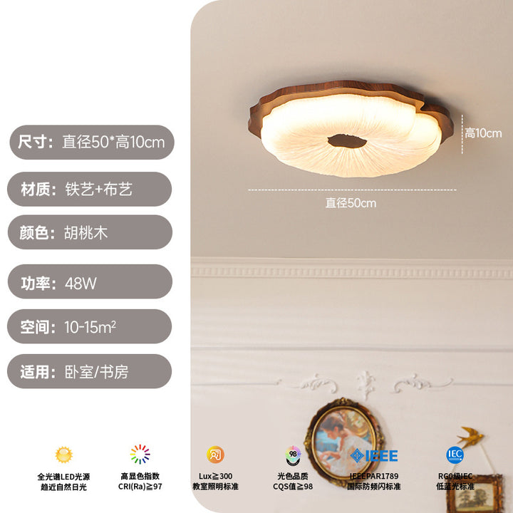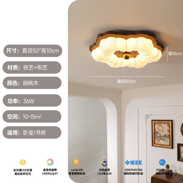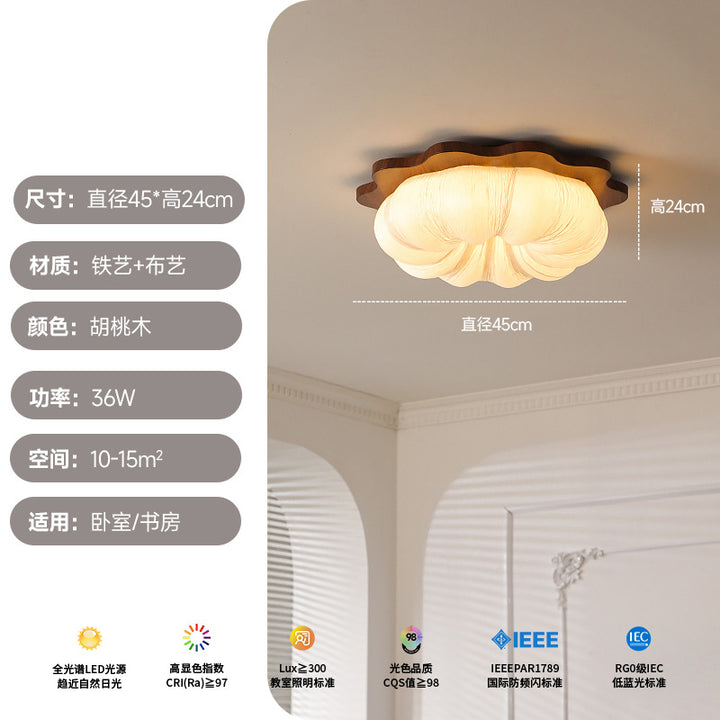 Bedroom light retro wabi-sabi wind study fabric pumpkin lamp walnut color eye protection children's room master bedroom ceiling lamp
