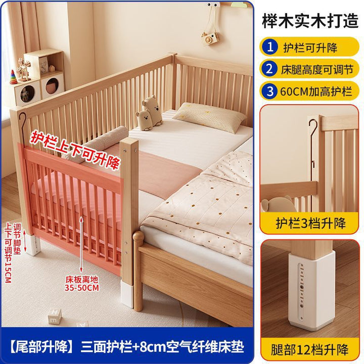 Beech splicing bed Children's bed Solid wood crib Wide splicing bed Children's bedside bed Children's splicing bed