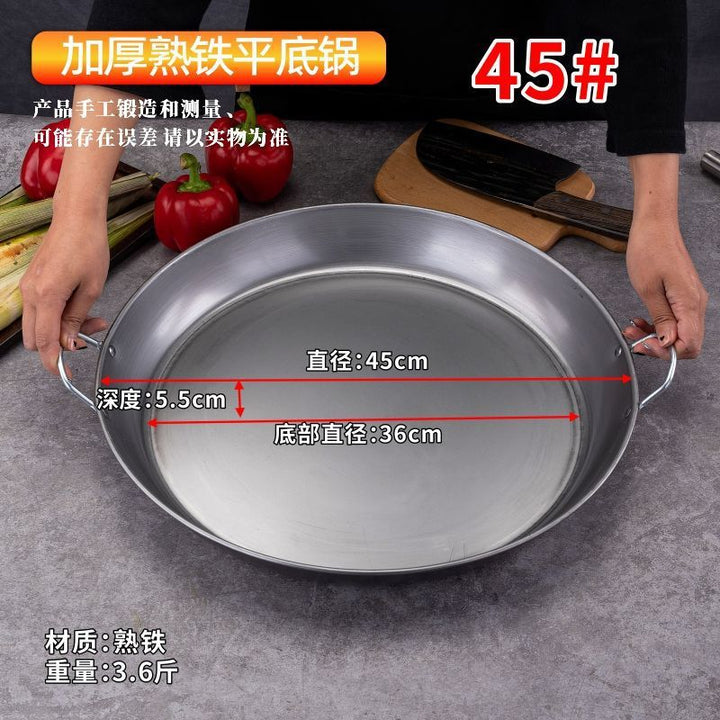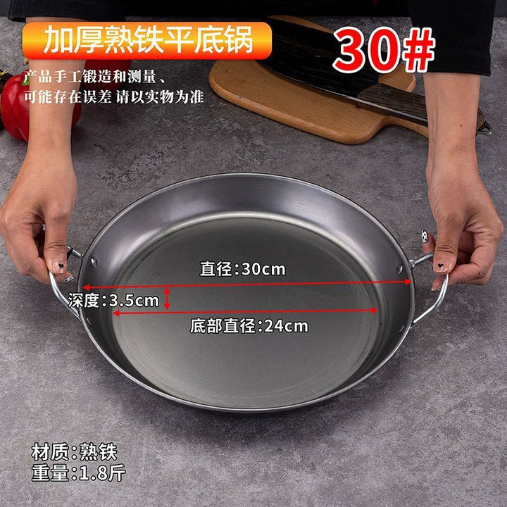 Binaural flat-bottomed iron pan uncoated pancake pan commercial stall non-stick pan pancake h...