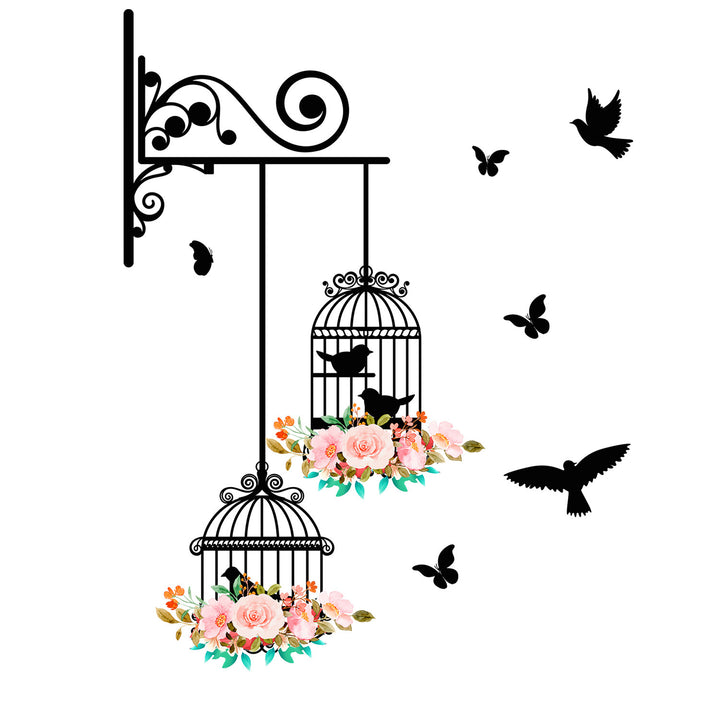 Birdcage bird wall sticker living room bedroom room decoration sticker self-adhesive sticker explosion