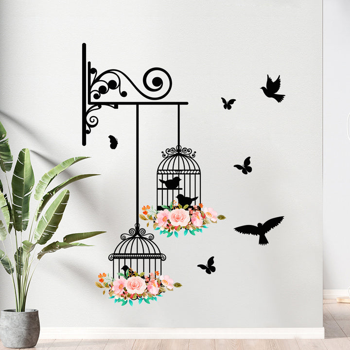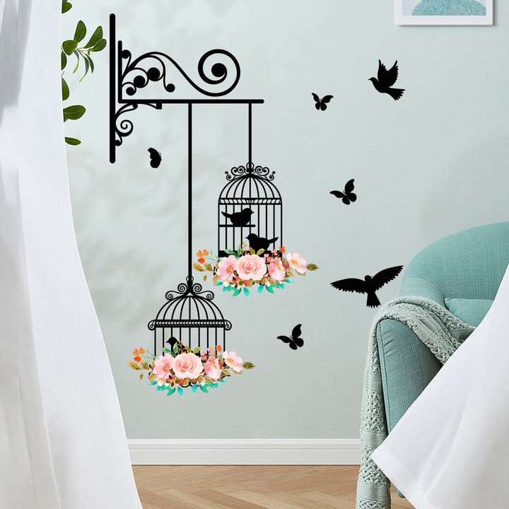 Birdcage bird wall sticker living room bedroom room decoration sticker self-adhesive sticker explosion