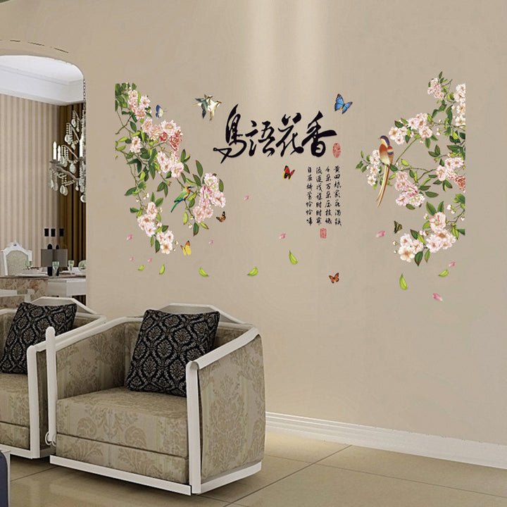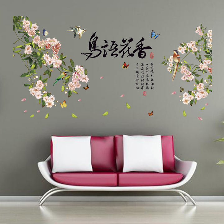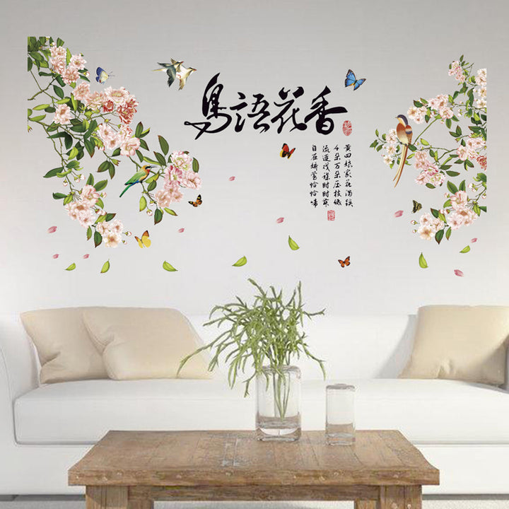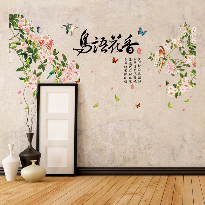 Birds and flowers, calligraphy and painting, landscape wall decoration stickers, home interior study wall self-adhesive wall sticker XH9251