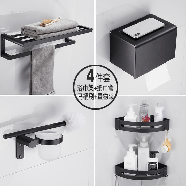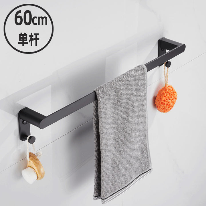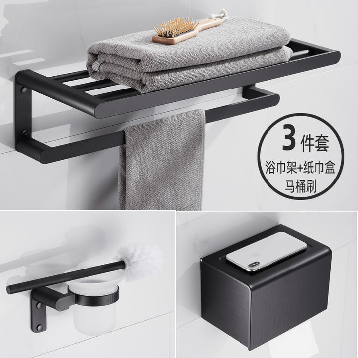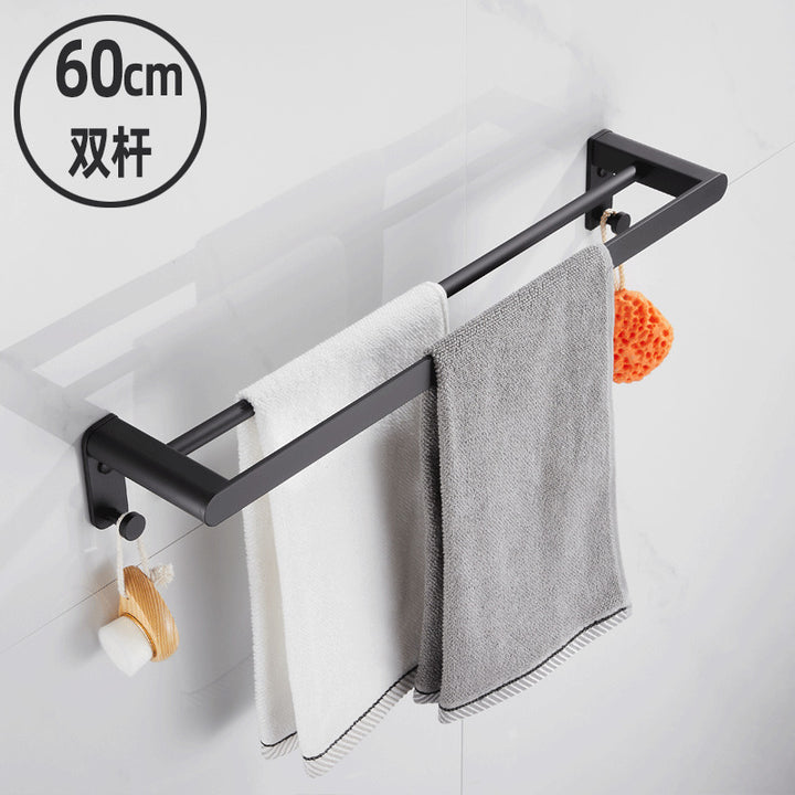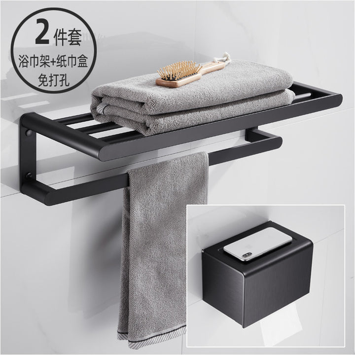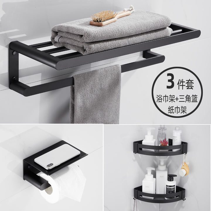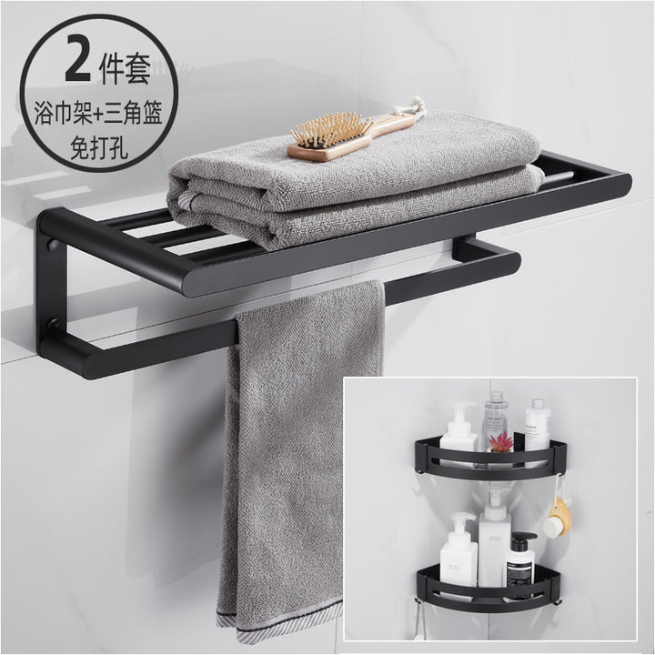 Black Bathroom Towel Rack Shelf Toilet Space Aluminum Thickened Bath Towel Rack Set Bathroom Pendant No Punching