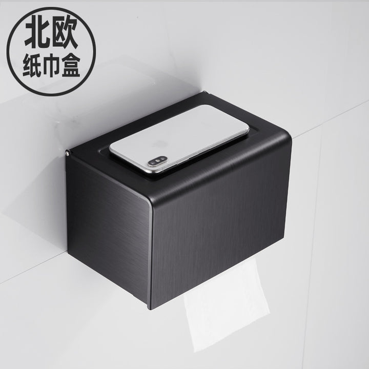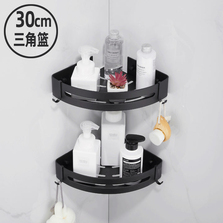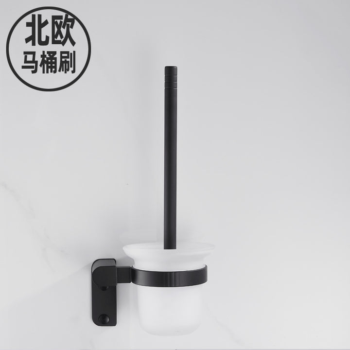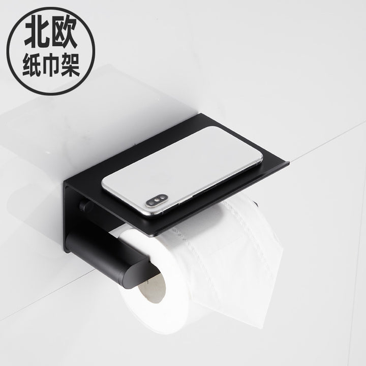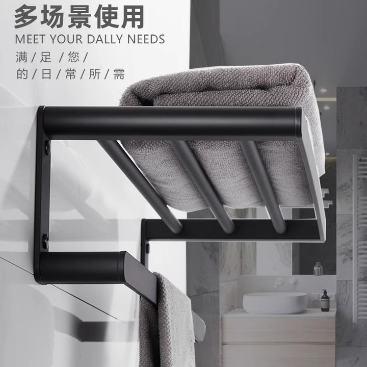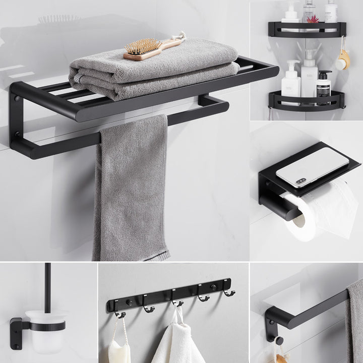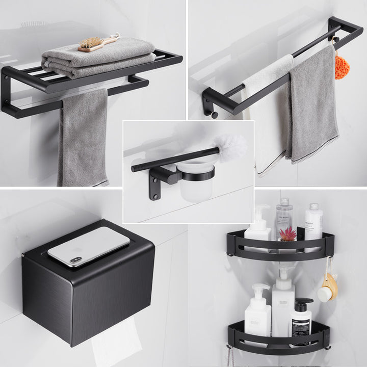Black Bathroom Towel Rack Shelf Toilet Space Aluminum Thickened Bath Towel Rack Set Bathroom Pendant No Punching