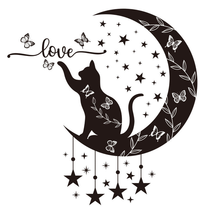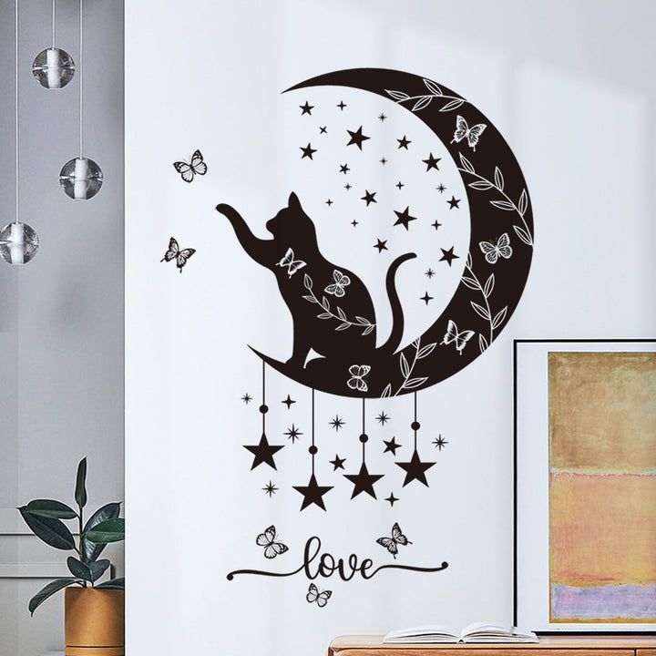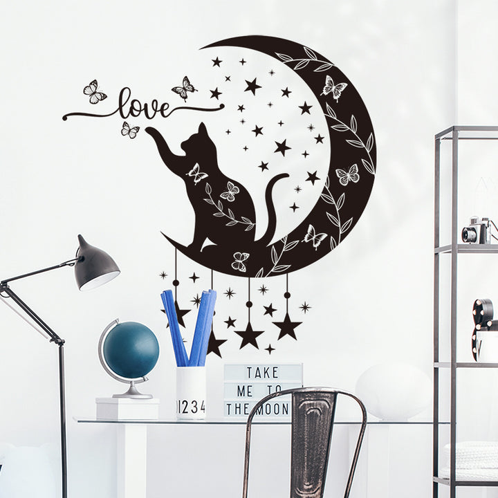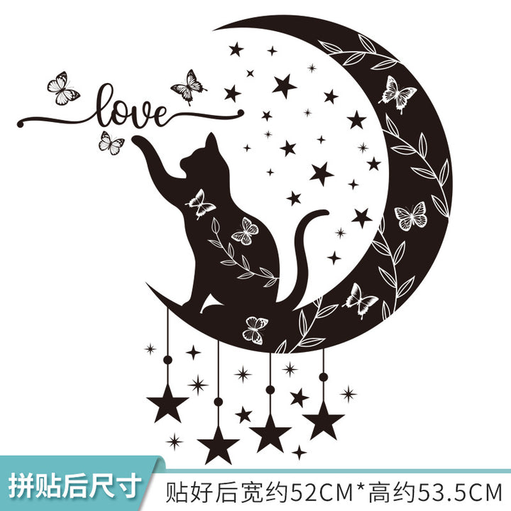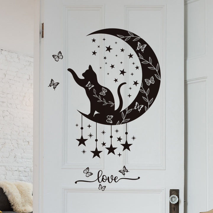 Black cat door decorative sticker moon star wall decorative sticker children's room background wall removable sticker