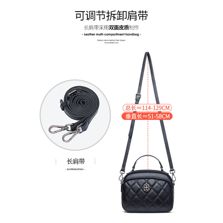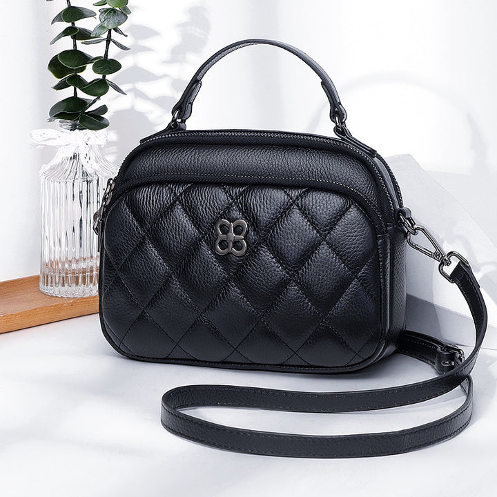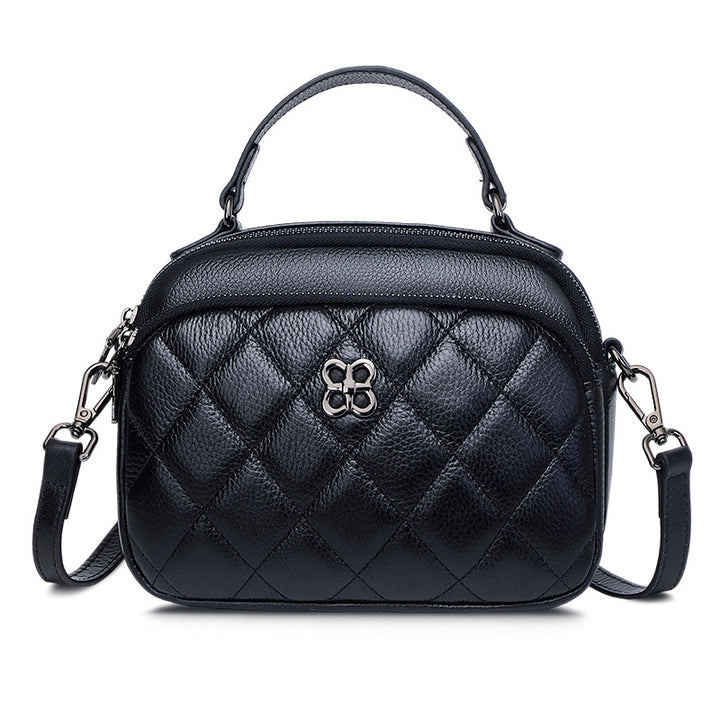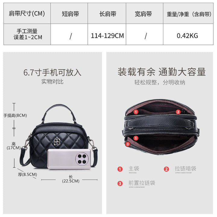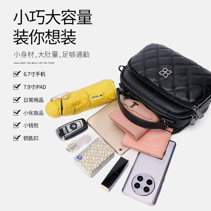 Black leather women's bag 2025 new fashion diamond large-capacity women's handbag first layer cowhide messenger bag bag