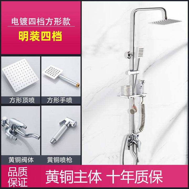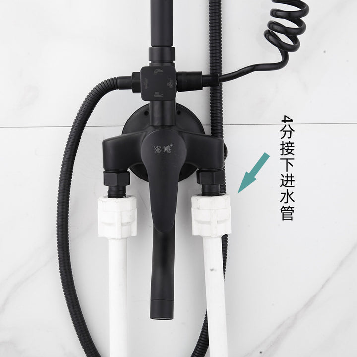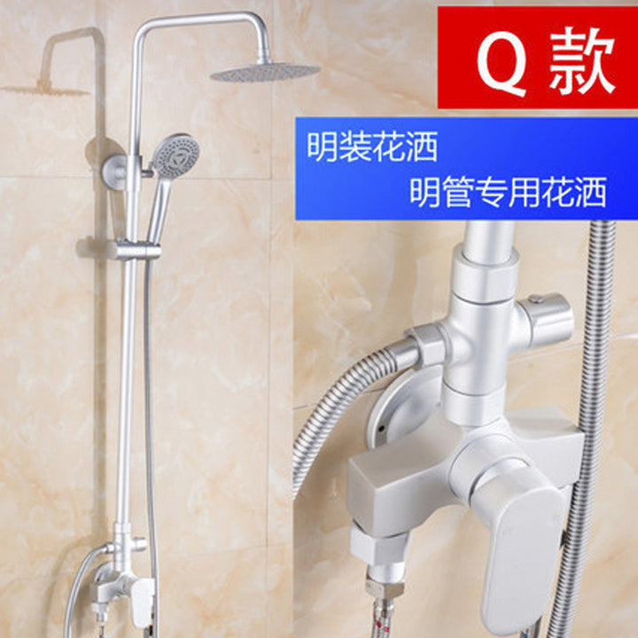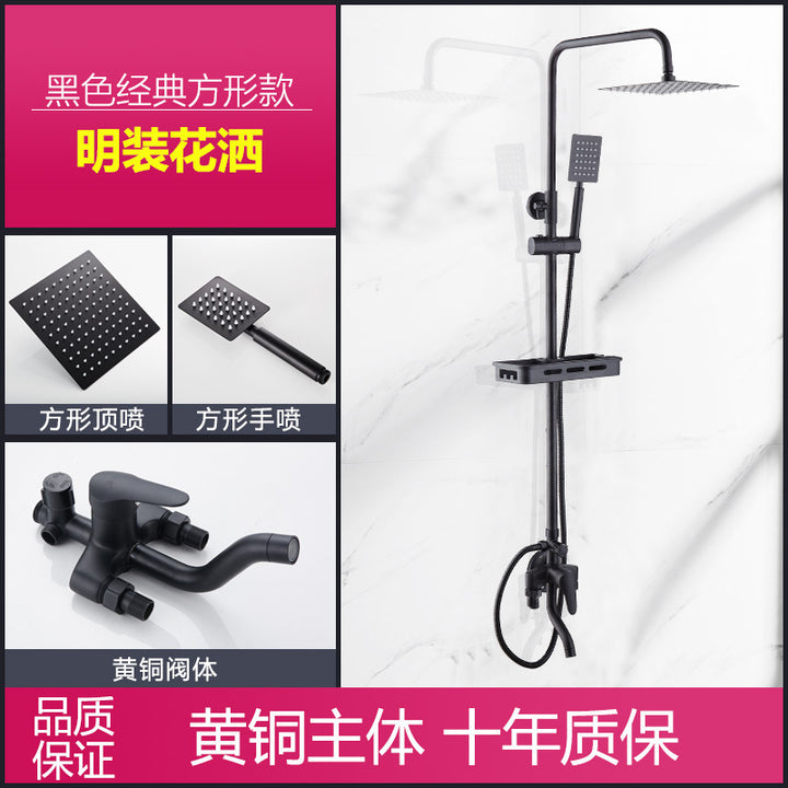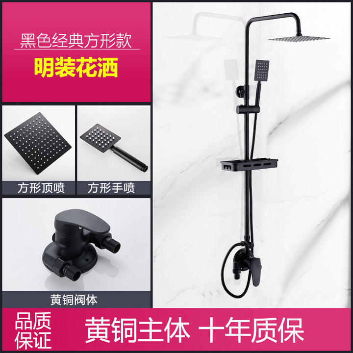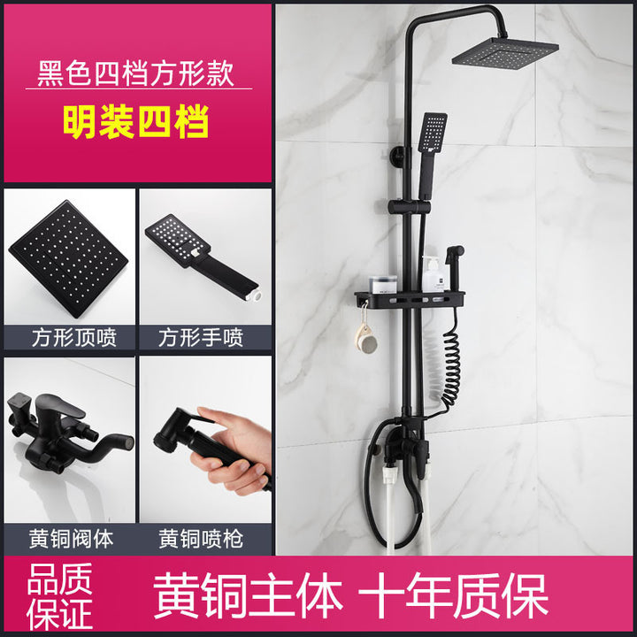 Surface mount - electroplating with launching third gear set, Surface-plated four-speed shower set, Surface mount - electroplating without water third gear set, 明装-黑色带下水三档套装, 明装-黑色恒温三档花洒套装, 明装-黑色恒温四档花洒套装, 明装-黑色四档花洒套装, 明装-黑色无下水三档套装, 明装-太空铝花洒套装 |