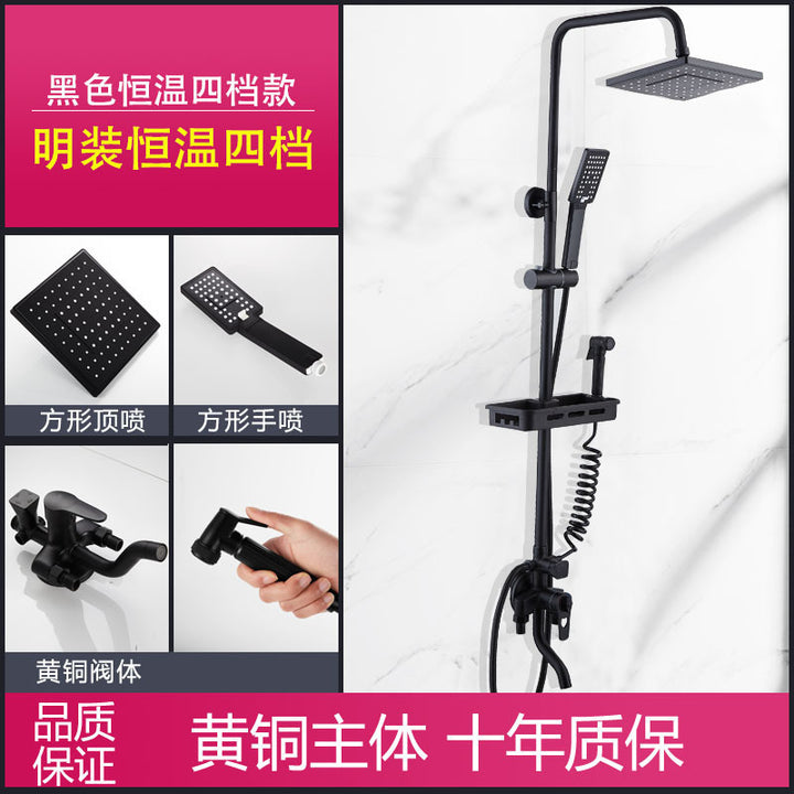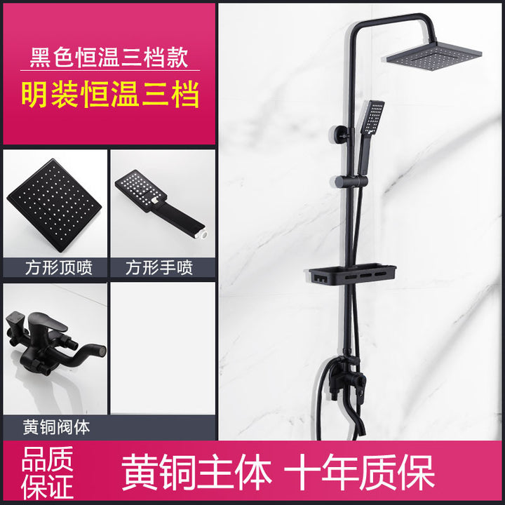 Black thermostatic surface shower shower set, pressurized nozzle, all-copper bathroom wholesale, factory direct sales, space aluminum